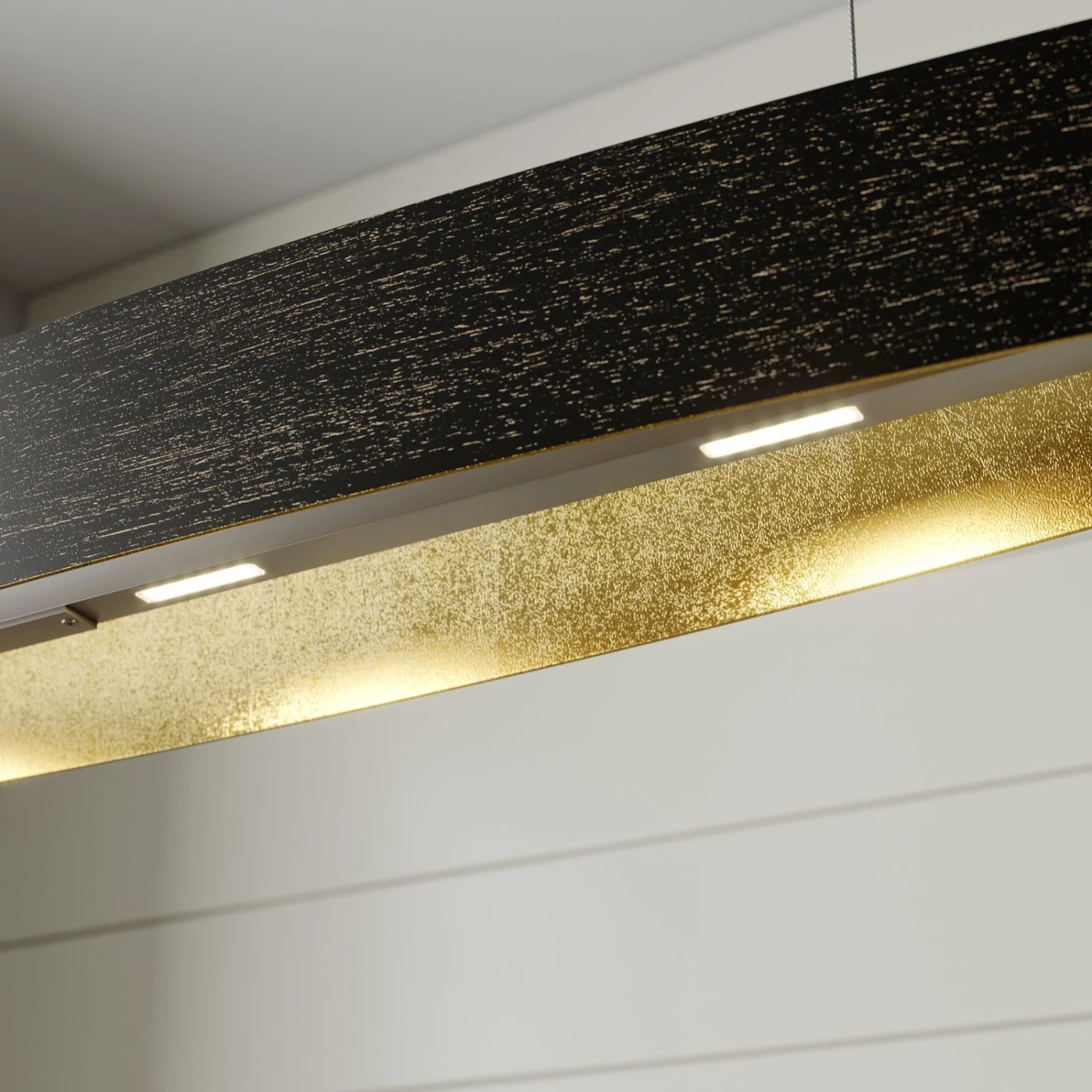 Höhenverstellbare LED-Hängeleuchte Lio mit Touchdimmer – Oberfläche schwarz mit goldenen Pinselstrichen