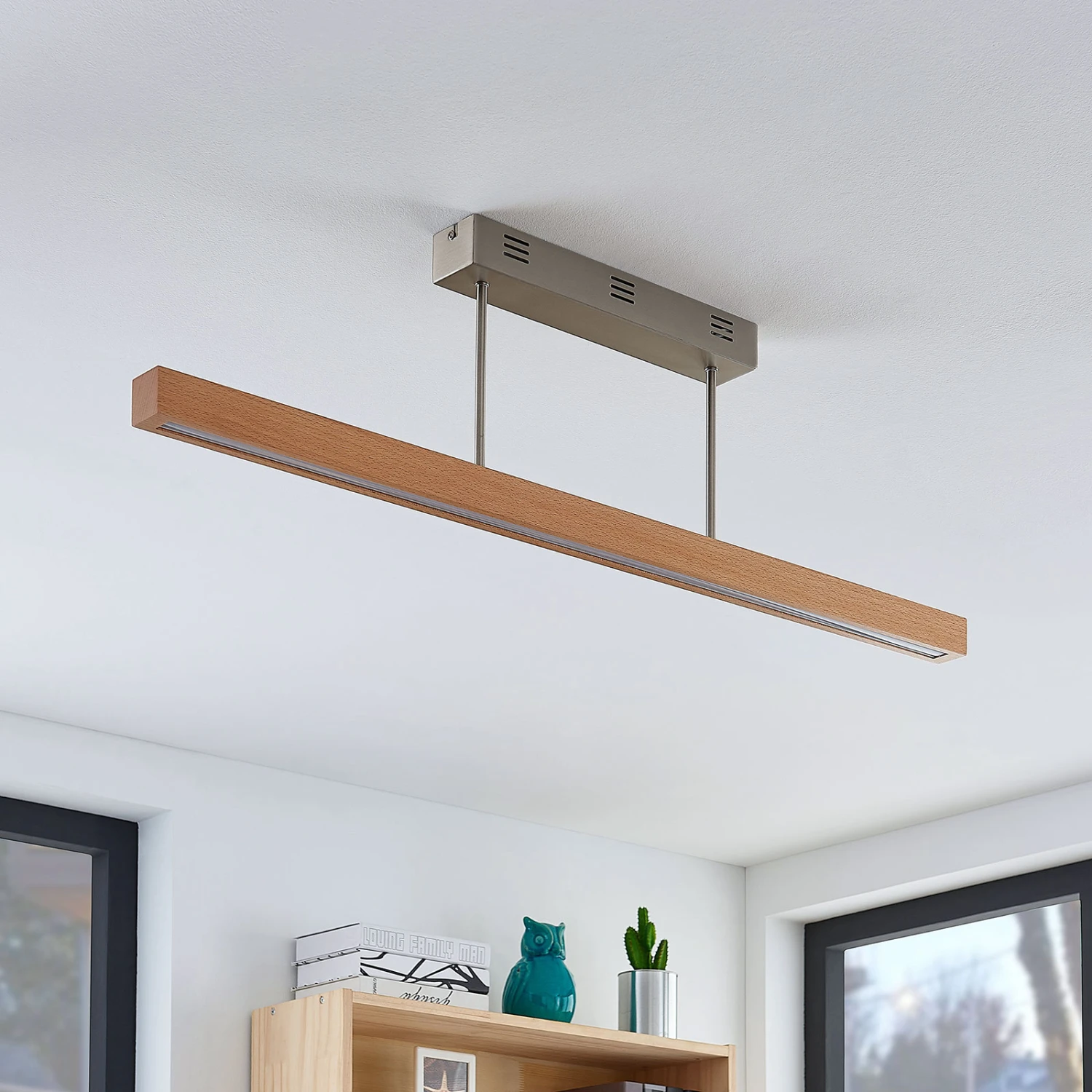 LED-Deckenleuchte Tamlin in eckiger Form mit Buchenholzelement, dimmbar via Wandschalter
