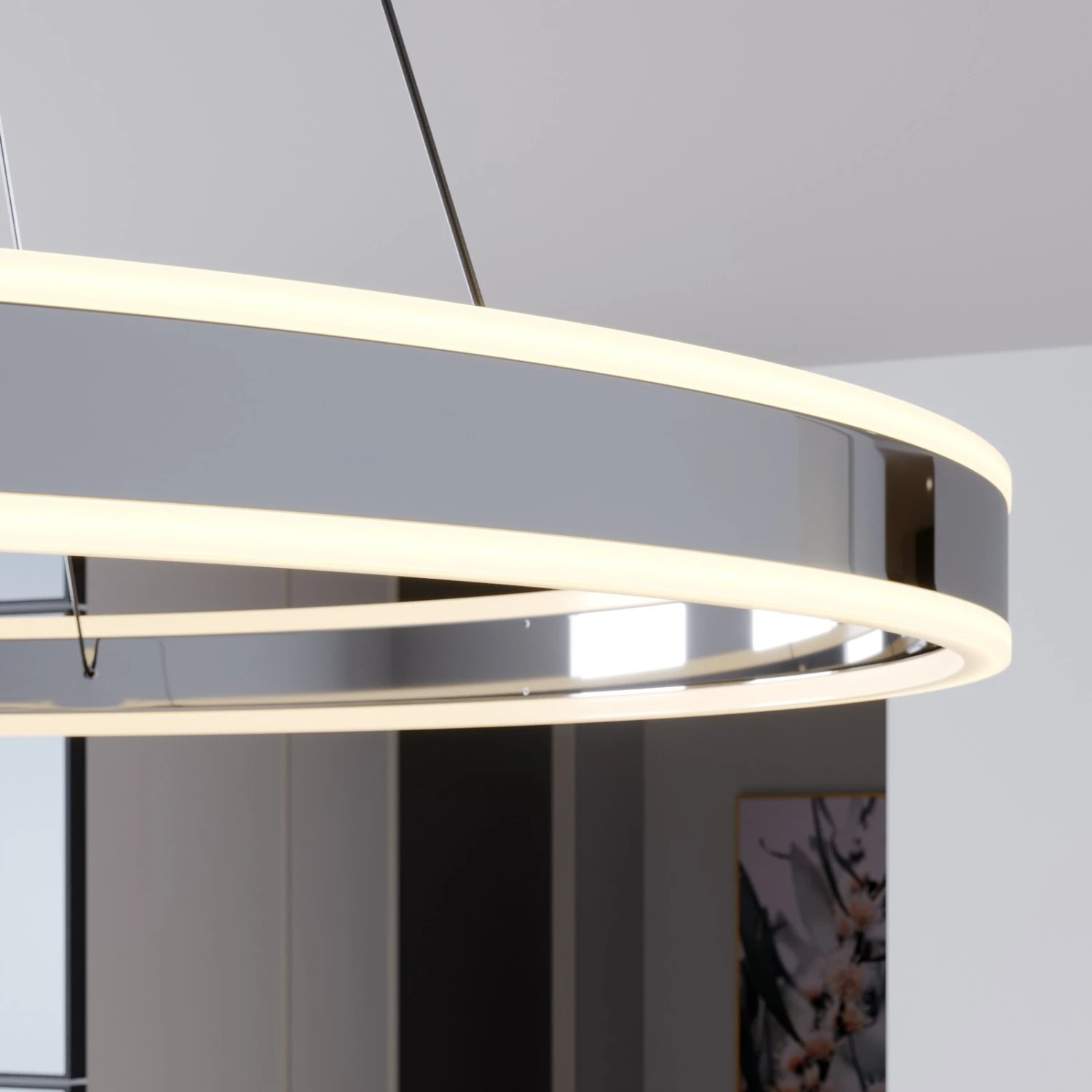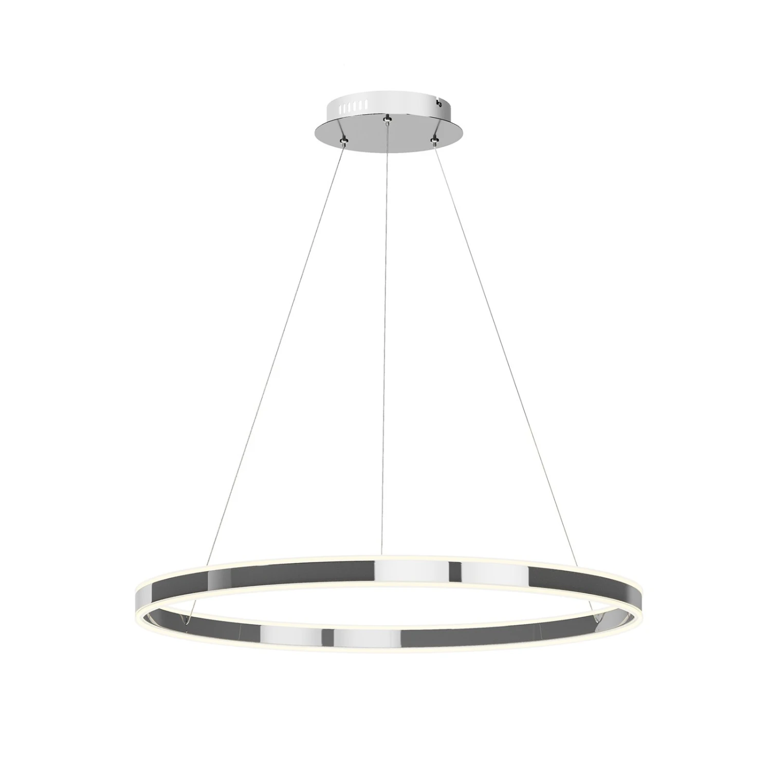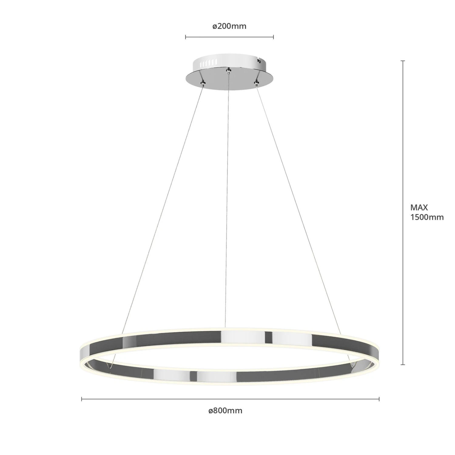 Große LED-Hängelampe Lyani in klassischer Ringform mit glänzendem Chromfinish, dimmbar via Wandschalter