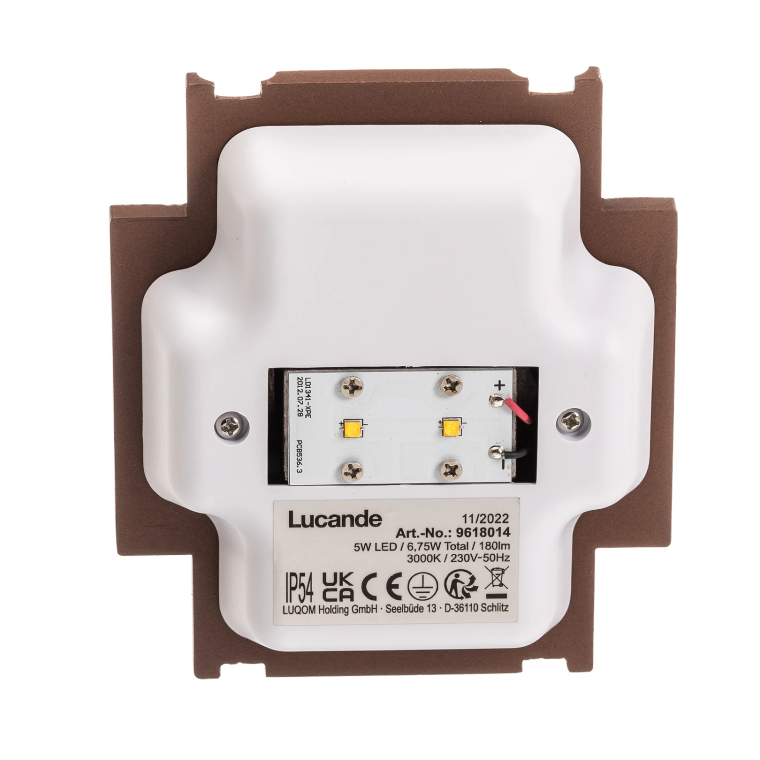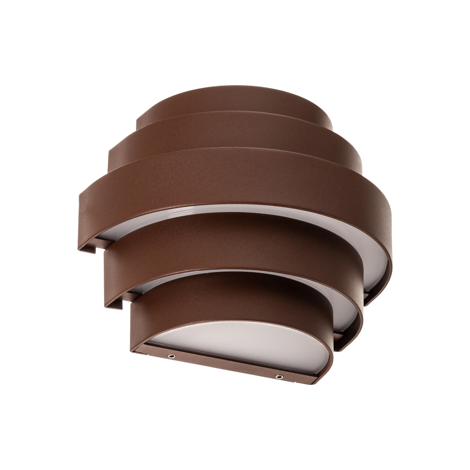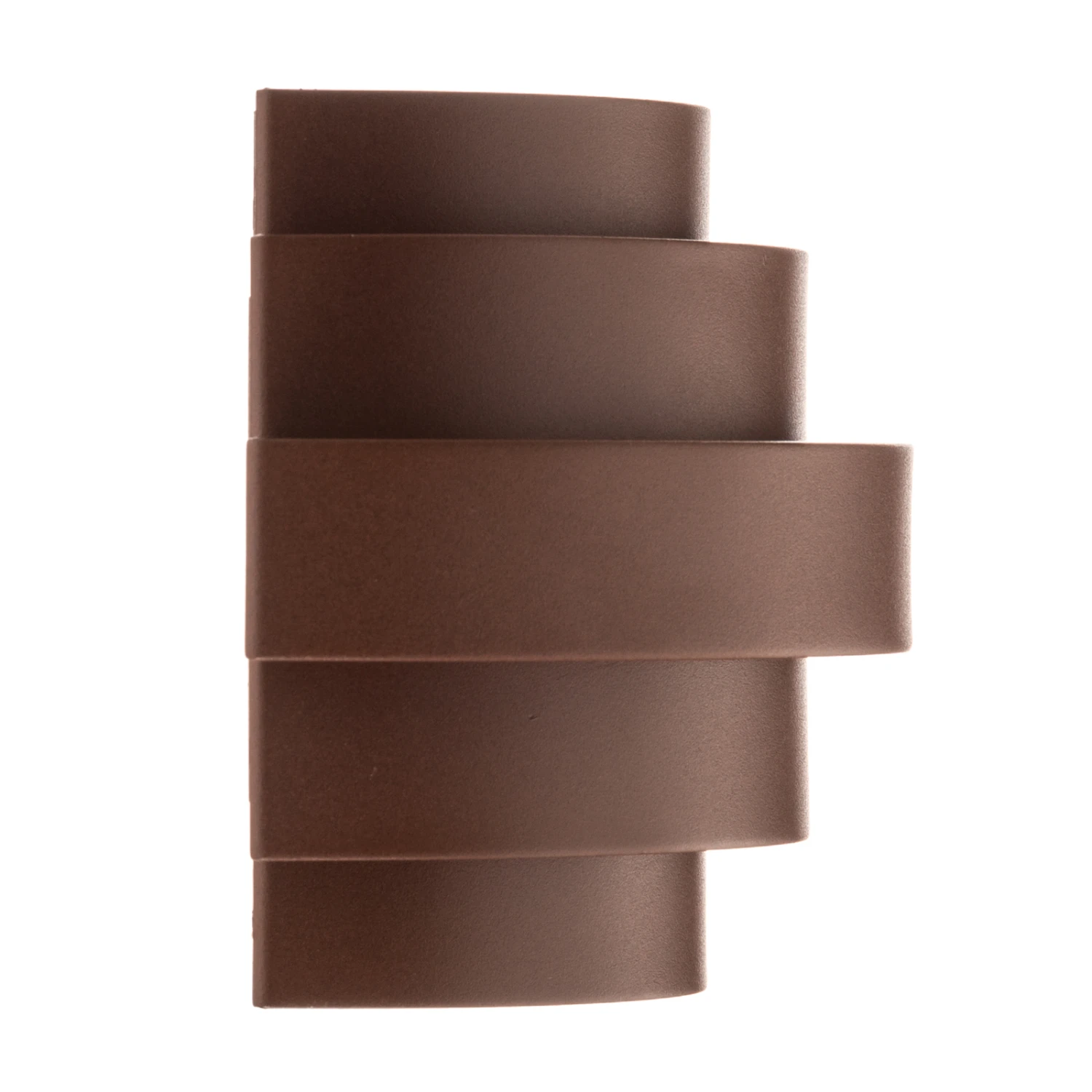 Rostbraune LED-Wandleuchte Enisa in besonderem Design für eine indirekte Beleuchtung des Außenbereichs