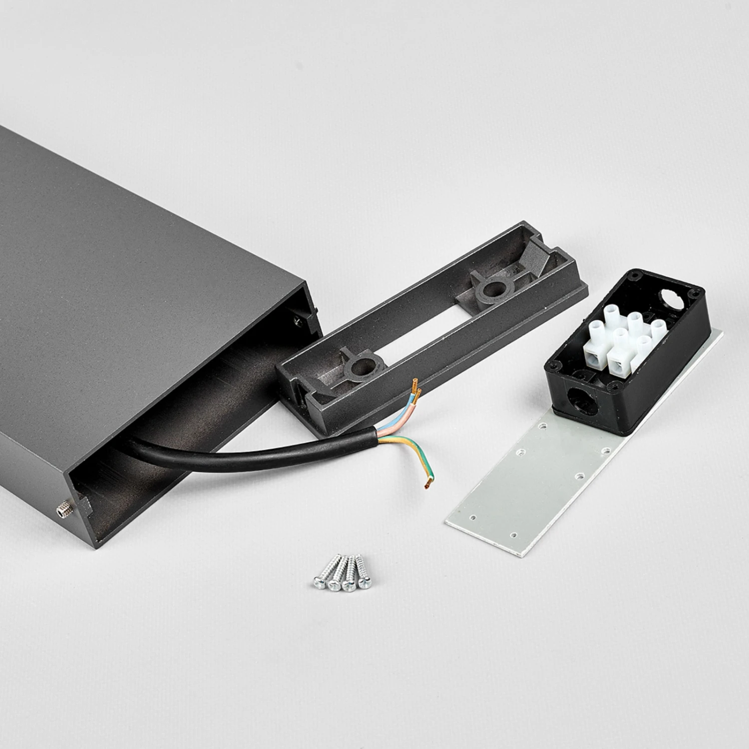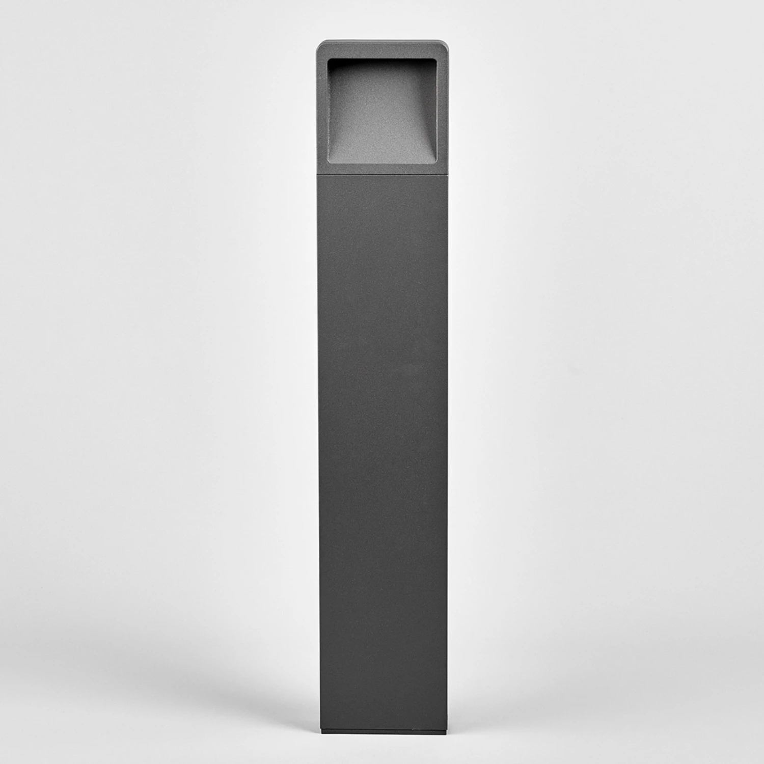 Diese LED-Wegeleuchte besteht aus Aluminiumdruckguss, das grafitgrau lackiert wurde und sich in formschöner Gestalt präsentiert, die hervorragend zu einem modernen Ambiente im Außenbereich passt. Das Gestell aus Aludruckguss ist vorwiegend geradlinig und auf moderne Weise schlicht, hat aber als besonderes Merkmal abgerundete Ecken, die das Gesamtbild noch harmonischer erscheinen lassen. Der Lichtschein entweicht nur indirekt, denn am oberen Ende der Leuchte ist eine Vertiefung in den Korpus eingelassen und die LED-Leuchtmittel sitzen direkt unterhalb des oberen Leuchtenabschlusses und leuchten daher nach unten. Ein stilvolles Beleuchtungsobjekt, das im modernen Außenbereich stets eine gute Figur macht.