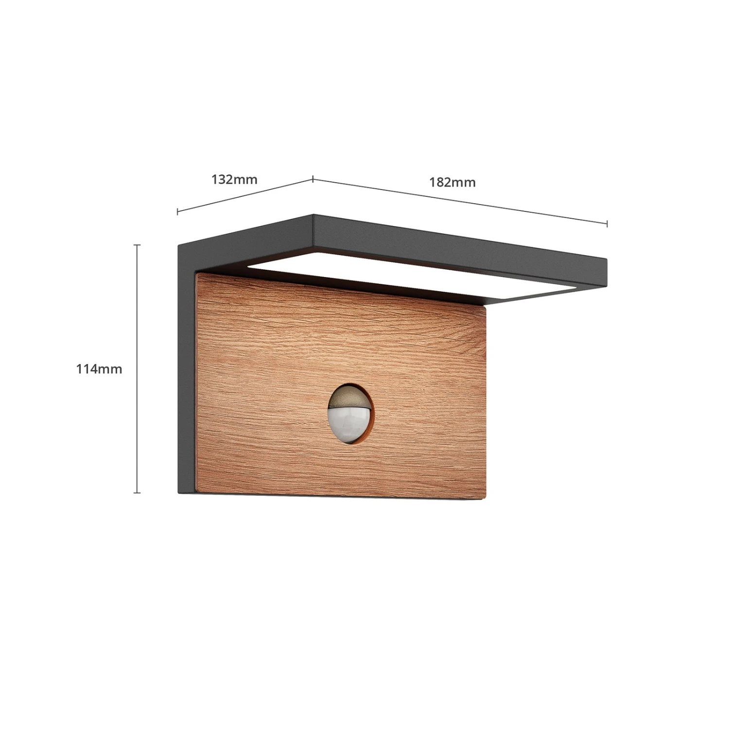 Die LED-Außenwandleuchte Lignus zeichnet sich vor allem durch ihre praktische Funktionalität aus. Ausgestattet mit einem Dämmerungssensor und einem Bewegungsmelder, bietet sie stromsparende und zugleich dekorative Beleuchtung für den Außenbereich.