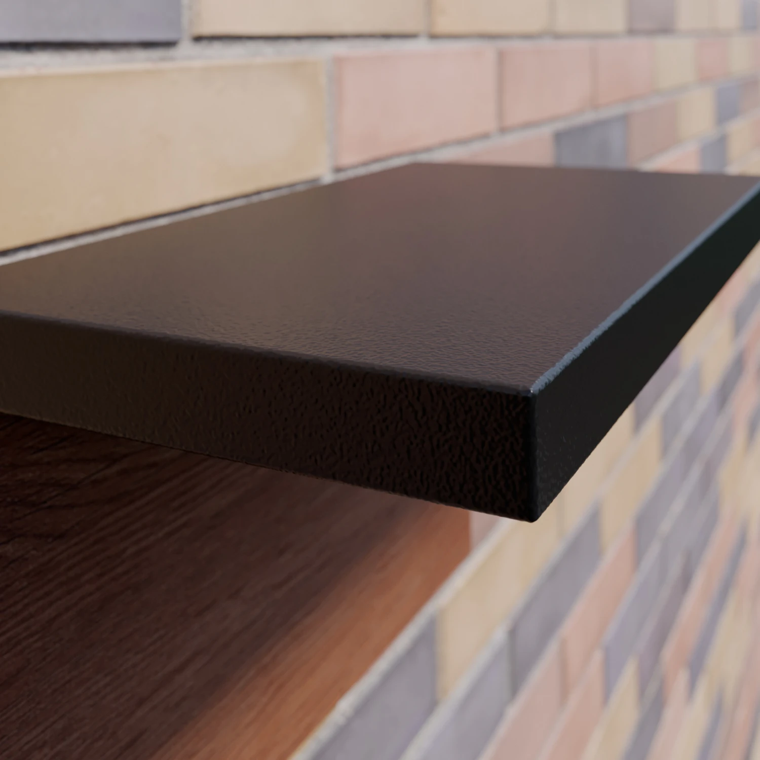 Das Gestell aus robustem Aluminium wurde mit einem dunkelgrauen Finish und einer dekorativen Front in Holzoptik versehen. Diese Kombination wirkt sehr elegant und auffallend, jedoch auch harmonisch.