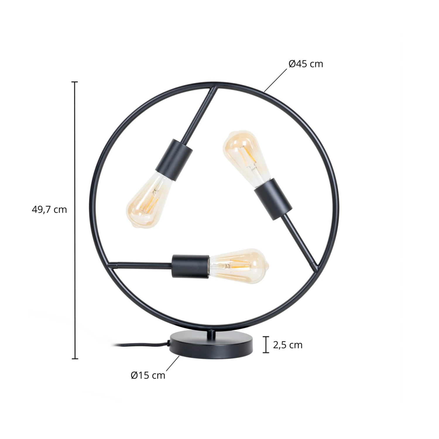 Linnard ist ein spannendes Dekorationsstück für das persönliche Einrichtungskonzept und sorgt für eine stimmige Akzentbeleuchtung. Sie ist aus Eisen hergestellt und besteht aus einem runden Fuß, der ein ebenfalls rundes Kreis-Element trägt, in dem drei offenliegende Fassungen sitzen. Diese können mit entsprechenden Leuchtmitteln bestückt werden. Durch die freie Sicht auf die Lichtquelle empfiehlt es sich hier zu Filament-Leuchtmitteln zu greifen, da diese mit ihrem besonderen Aussehen, das Design der Leuchte noch weiter hervorheben. Die Tischlampe Linnard ist in einem schlichten Schwarz gehalten, was das Aussehen wohlwollend abrundet. Sie findet ihren perfekten Platz in einem Wohnzimmer, Schlafzimmer oder auf einer Kommode im Flurbereich.