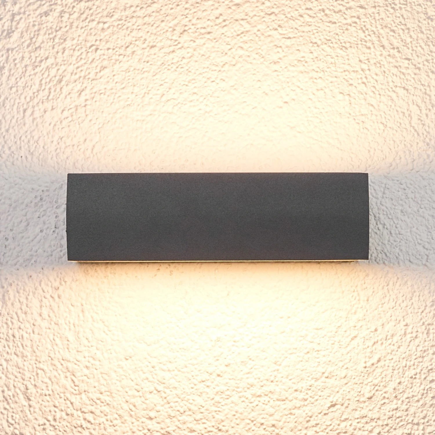 Grafitgraue LED-Außenwandlampe Lissi mit Lichtaustritt nach oben und unten