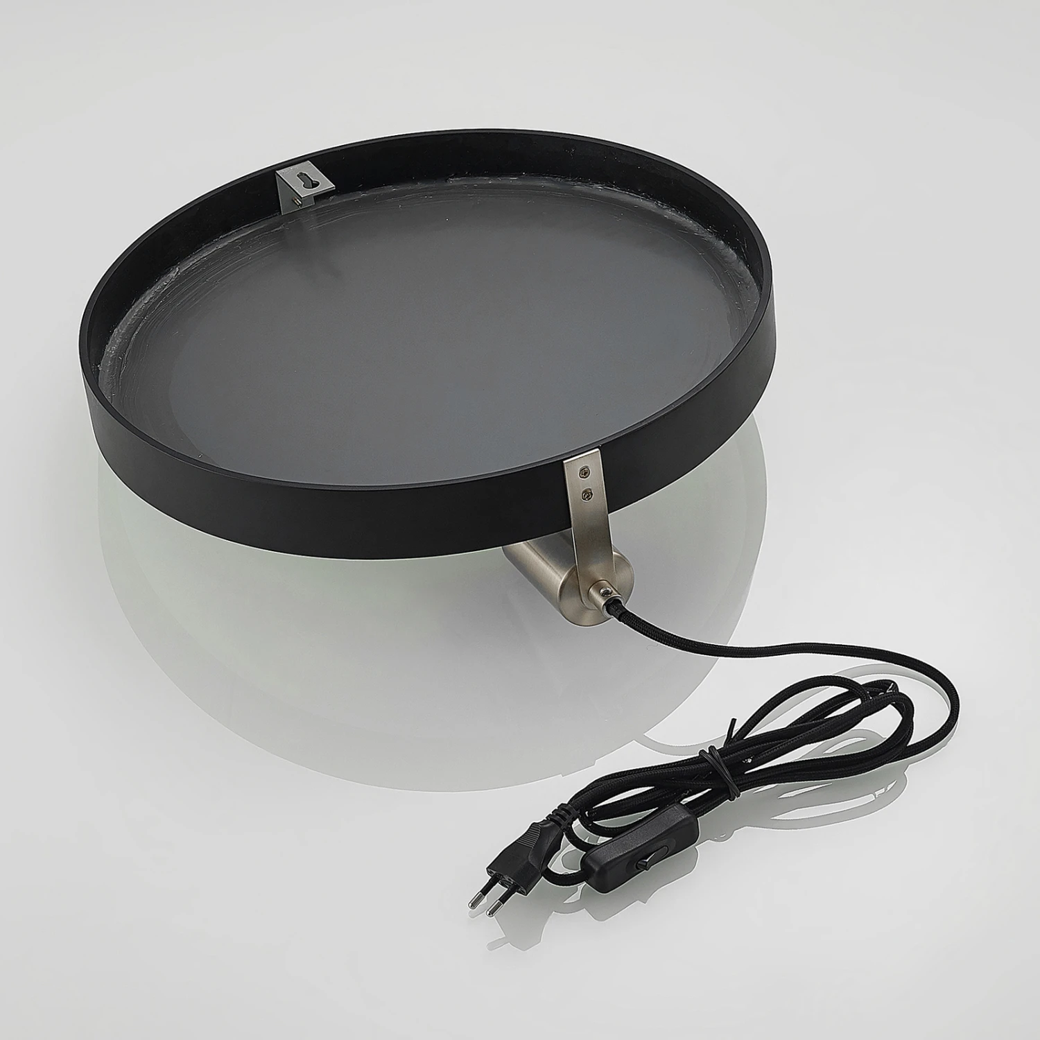 Die Wandleuchte Lumani ist ein besonderes Beleuchtungsobjekt, das zugleich mit zwei unterschiedlichen Funktionen punktet: zum einen ist es eine Lichtquelle, zum anderen ein Spiegel. Hier wurde gänzlich auf einen Leuchtenschirm verzichtet, sodass der Lichtschein ungehindert entweichen kann und mithilfe des Spiegels in den Raum zurückgestrahlt wird. Die Bedienung erfolgt über einen Kippschalter am Kabel.