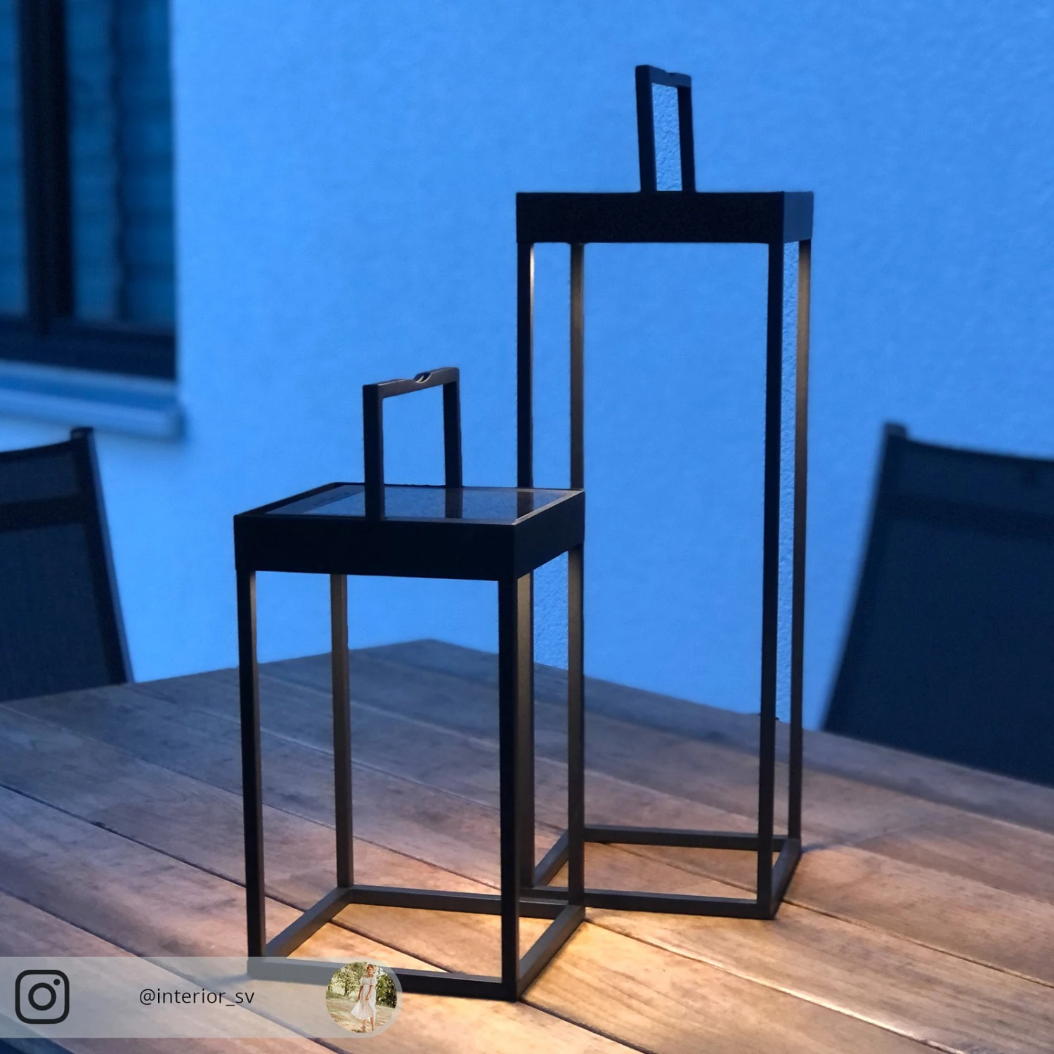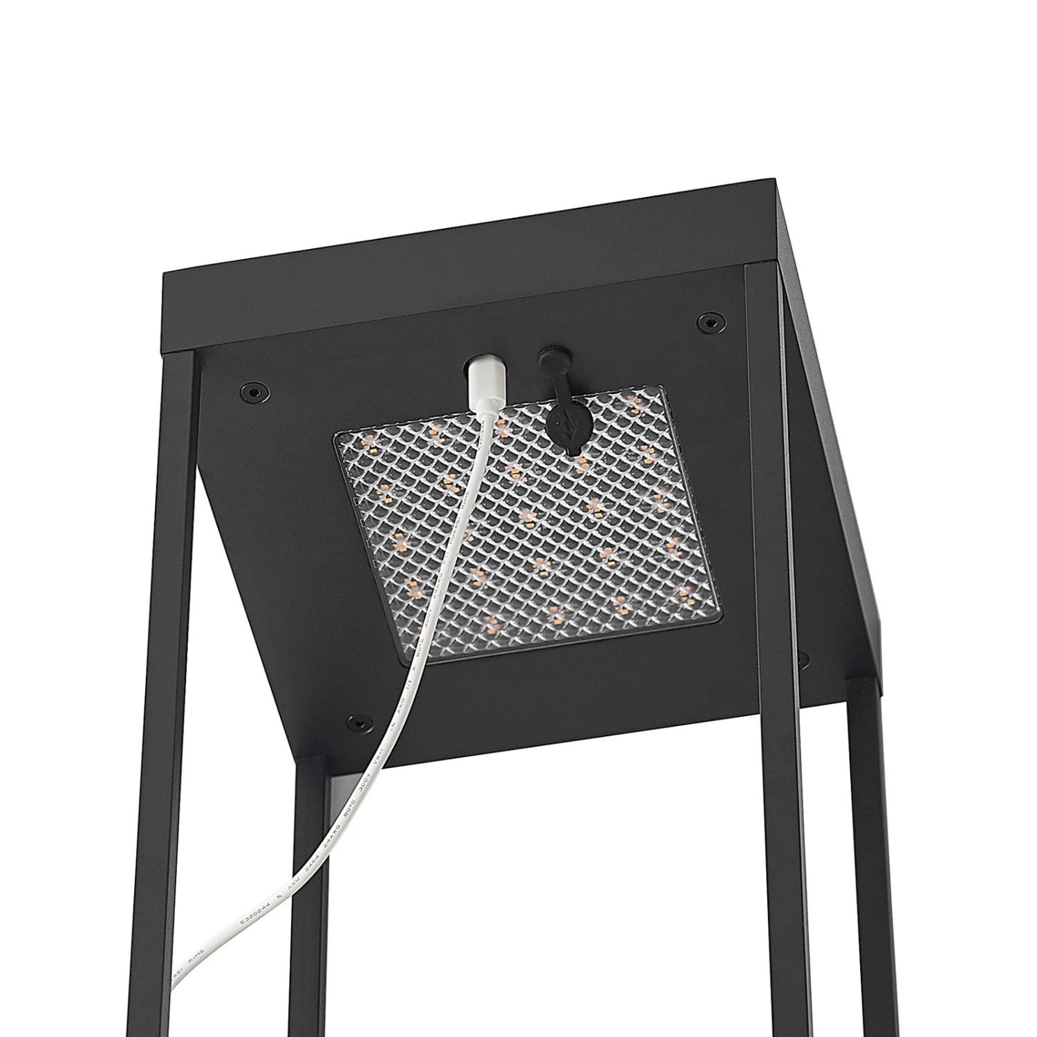 Die LED-Solarlampe Lynzy überzeugt mit ihrem schlichten, modernen Aussehen und ist wie gemacht für den Außenbereich. Ihr Leuchtenkörper ist ein Quader, welcher aus schmalen Streben aus Aluminium besteht. Im Inneren sitzen festverbaute LEDs, welche ein warmweißes Licht erzeugen. Die Leuchte kann über das Solarpanel oder mithilfe eines USB-Kabels aufgeladen werden. Durch die abnehmbare Wandhalterung ist die Leuchte als Wandleuchte oder aber als Tischleuchte einsetzbar. Das dezente Design integriert sich mühelos in den Baustil eines Hauses oder in das restliche Mobiliar auf der Terrasse.