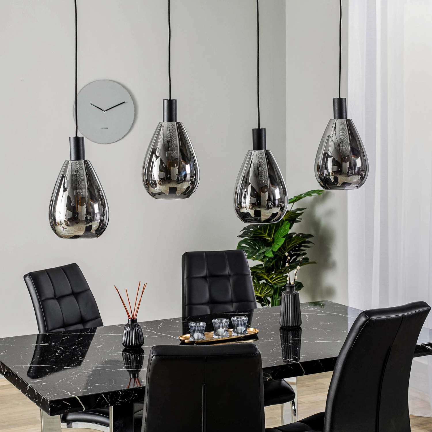 Vierflammige Esszimmer-Pendellampe Marvelos mit bauchigen Rauchglasschirmen