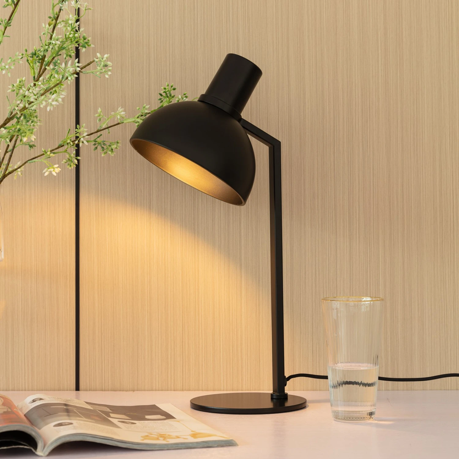 Mostrid überzeugt mit einem geradlinigen Look, wobei der Lampenschirm rund ist. Die gesamte Leuchte ist aus Eisen gefertigt und mit einem schwarzen Finish versehen worden, das eine matte Oberfläche besitzt. Das Design mit der exklusiven Gestaltung passt sowohl zu modernen Einrichtungen als auch zu Vintagestilen oder Skandi-Looks. Die Tischleuchte eignet sich mit dem nach unten gerichteten Lichtschein gut zum Lesen am Schreibtisch.