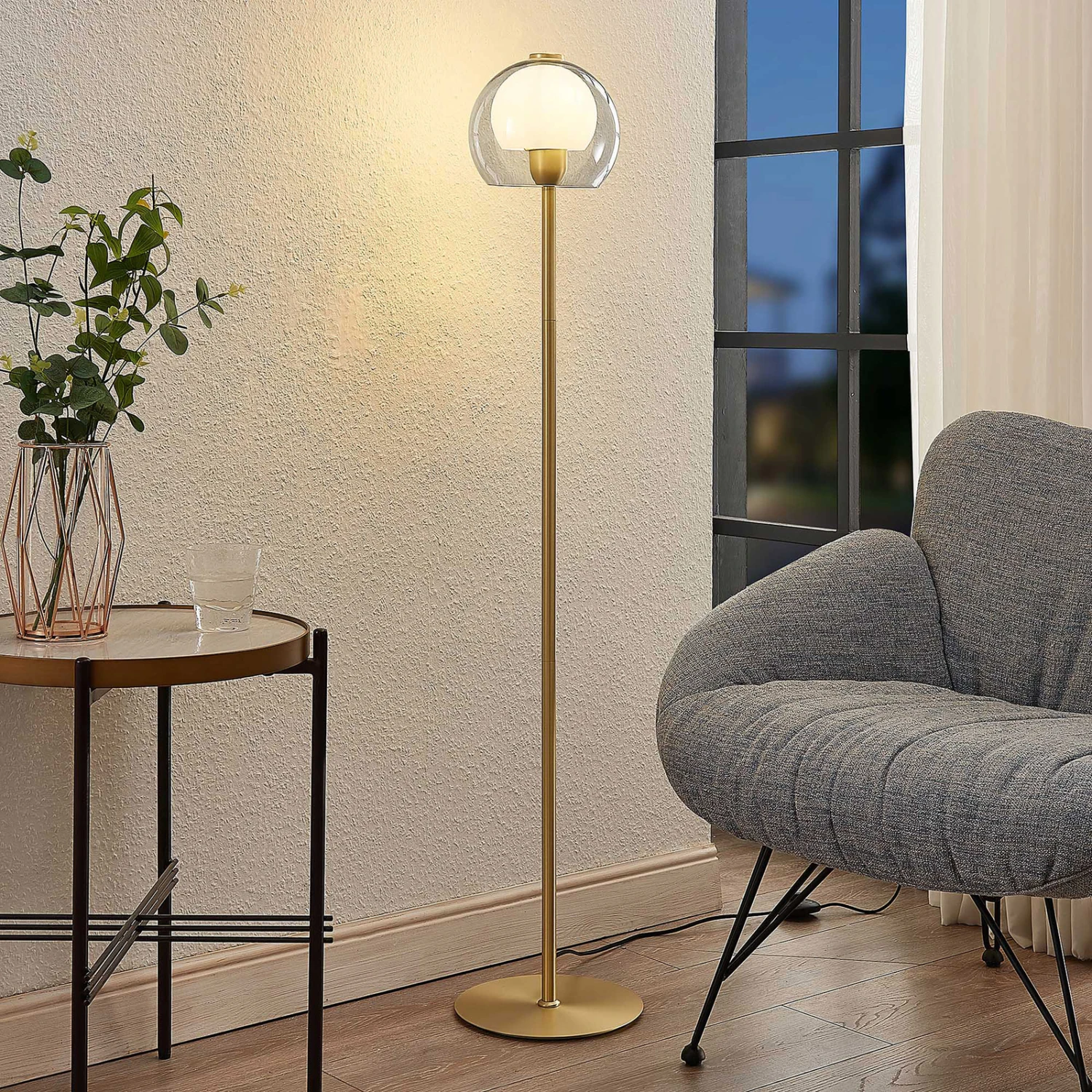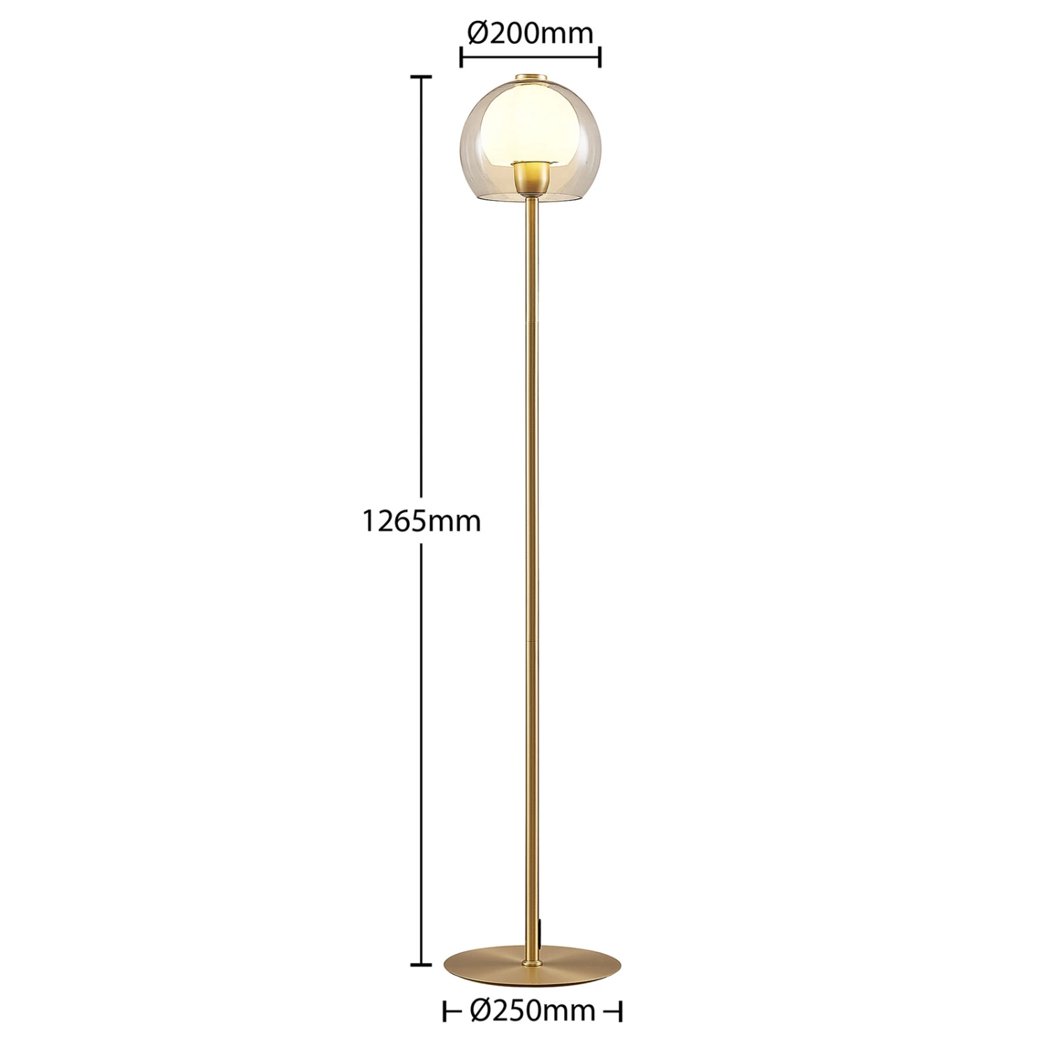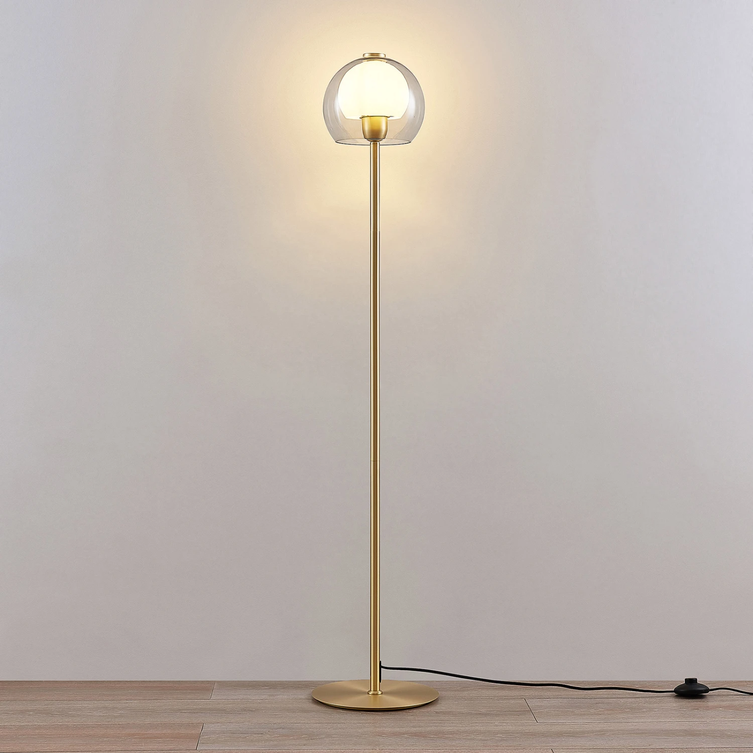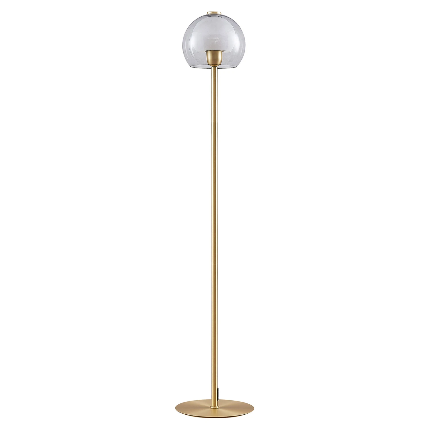 Die Stehlampe Mylah ist eine attraktive Ergänzung für ein Wohnzimmer oder ein Schlafzimmer. Sie besteht aus Eisen, welches eine messingfarbene Oberfläche besitzt und trägt einen Leuchtenschirm, der aus zwei Glas-Halbkugeln besteht. Dieser Schirm kann mit entsprechenden Leuchtmitteln bestückt werden und somit die Lichtintensität und Lichtfarbe an die eigenen Bedürfnisse angepasst werden. Die Stehleuchte Mylah ist die perfekte Begleiterin für das abendliche Bücherlesen auf der Couch und der markante Vintage-Charakter verleiht dem Mobiliar das gewisse Etwas. Darüber hinaus ist die Leuchte unkompliziert über einen Kabelschalter ein- und ausschaltbar.