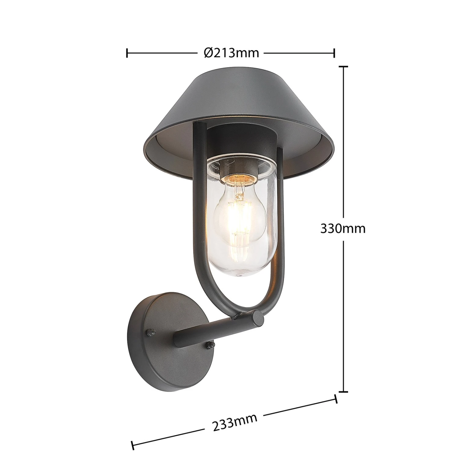 Durch den transparenten Leuchtenschirm aus Glas hat man einen freien Blick auf die Brennstelle. Deshalb bietet sich hier ein dekoratives Leuchtmittel an, wie zum Beispiel eine stromsparende LED-Lampe in angesagter Filament-Optik. Mit der Schutzart IP44 ist Olinum bestens gegen Regen und Nässe geschützt, sodass die Leuchte für langfristigen Einsatz draußen geeignet ist.