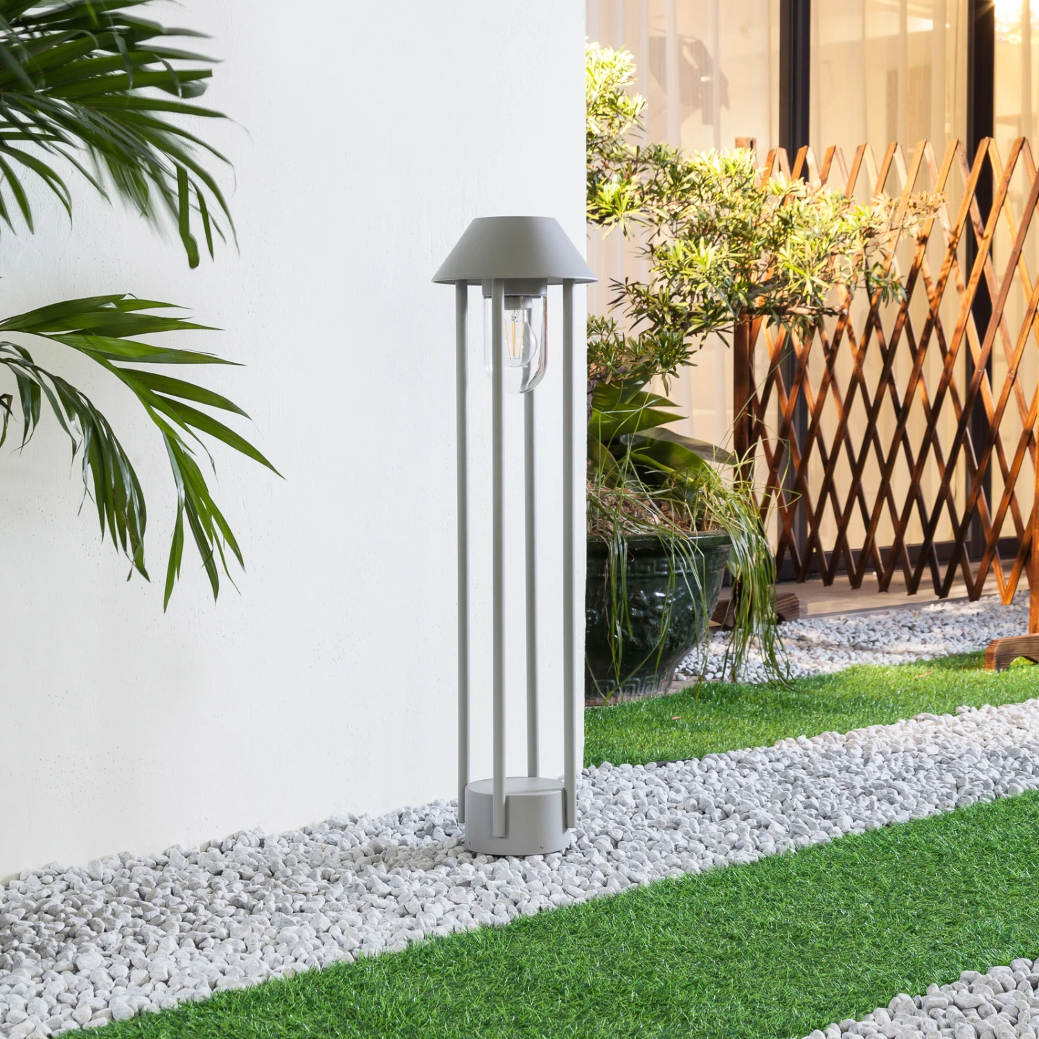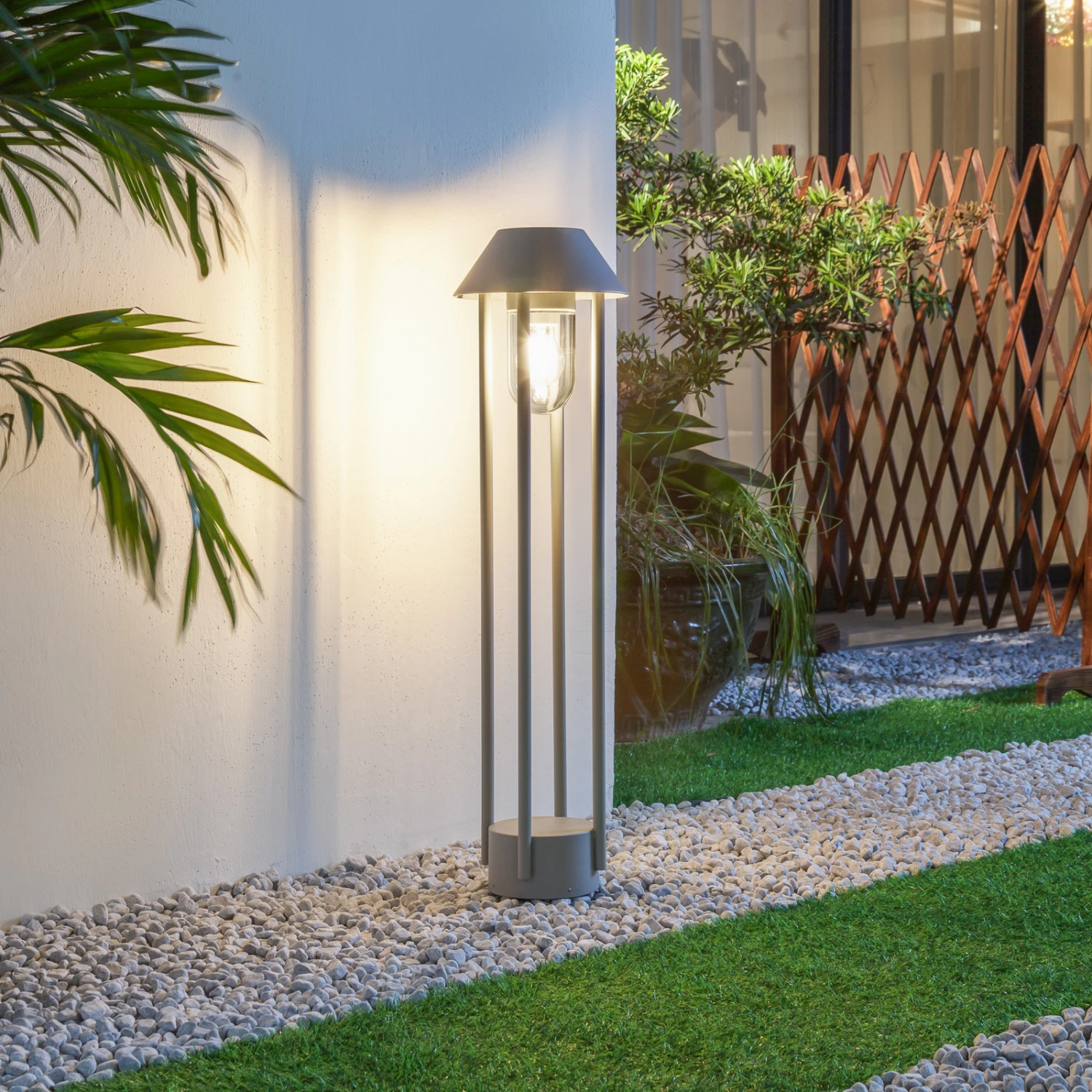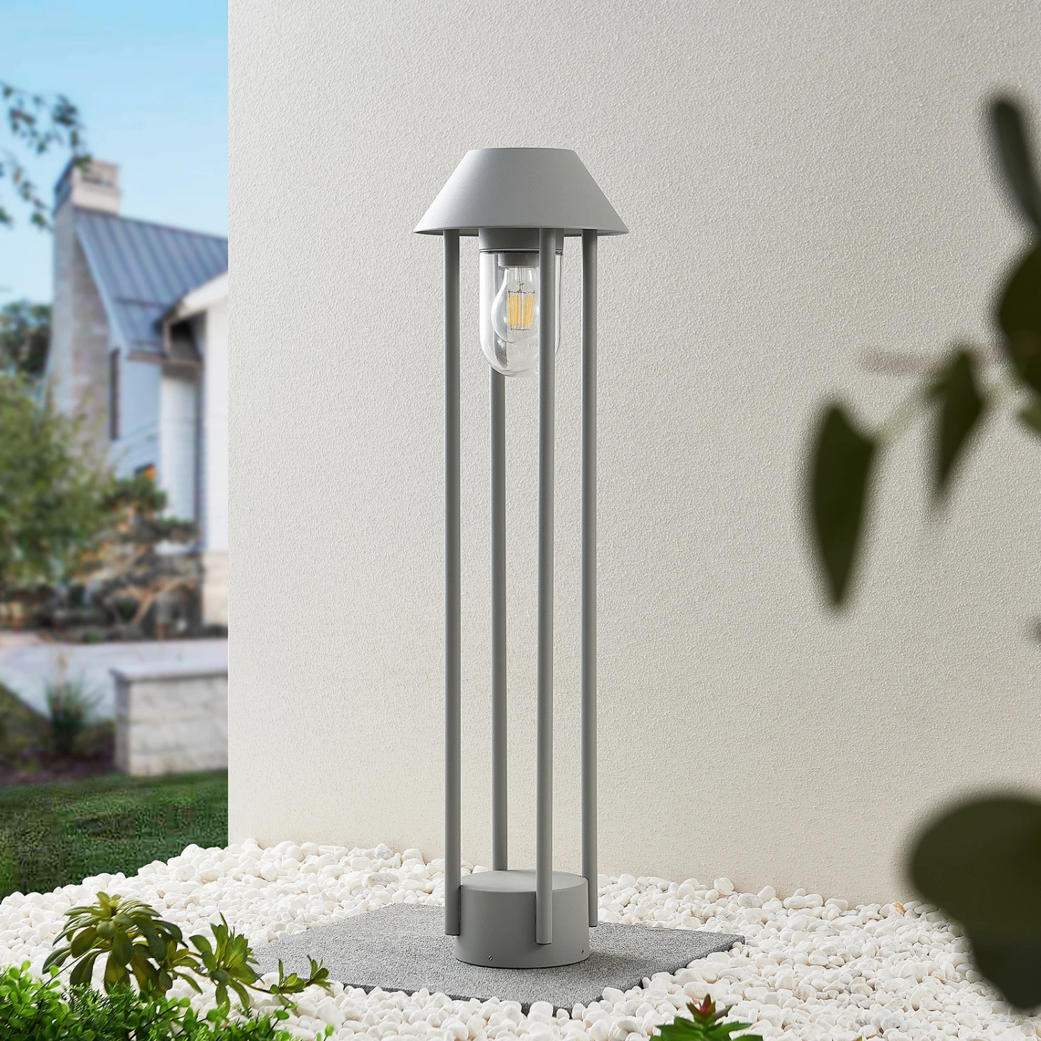 Silbergraue Wegeleuchte Olinum als moderne Garten- oder Terrassenbeleuchtung