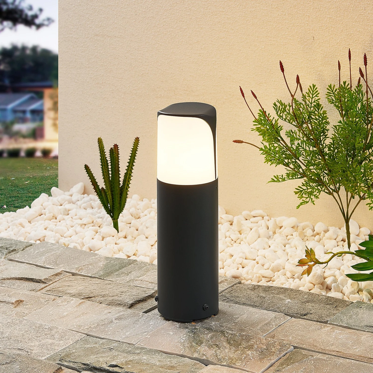 Dunkelgraues Aluminium wird hier geschickt komibiniert mit einem opalweißen Diffusor, sodass beide im Gesamtbild die elegante Form der modernen Sockelleuchte Paikea ergeben. Einsetzbar im gesamten Außenbereich rund ums Haus, erleuchtet Paikea Treppenaufgänge, kleine Mauern, Bereiche an der Terrasse oder auch am Hauseingang.