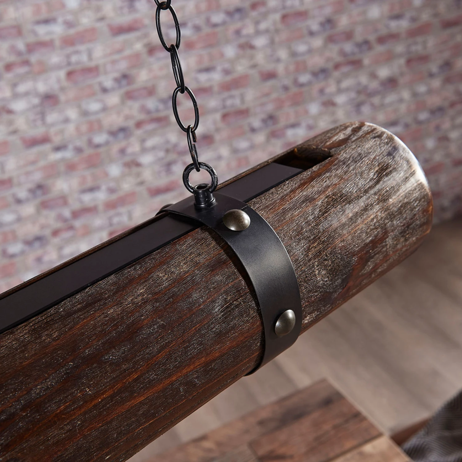 Rustikal anmutende Holz-Pendelleuchte Legno mit Kettenaufhängung