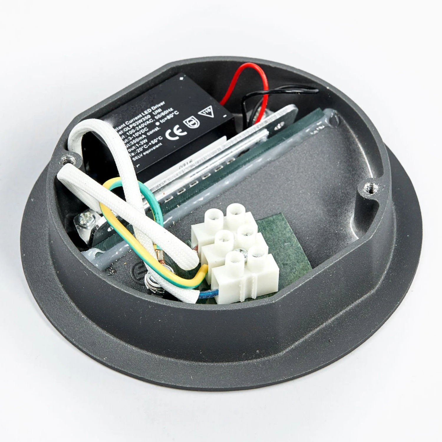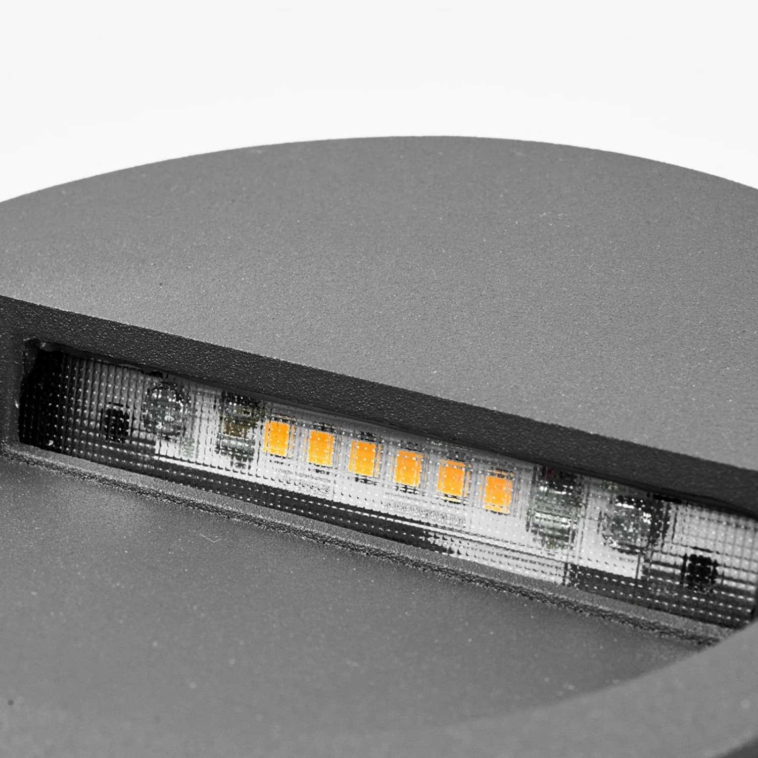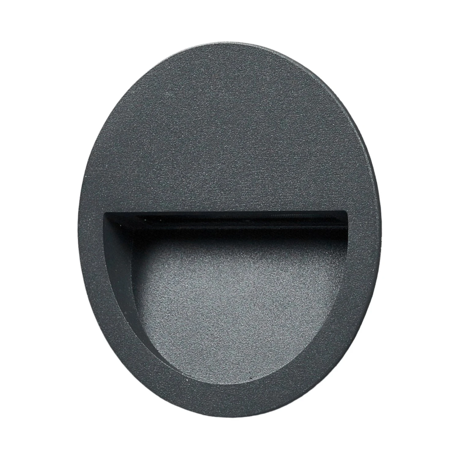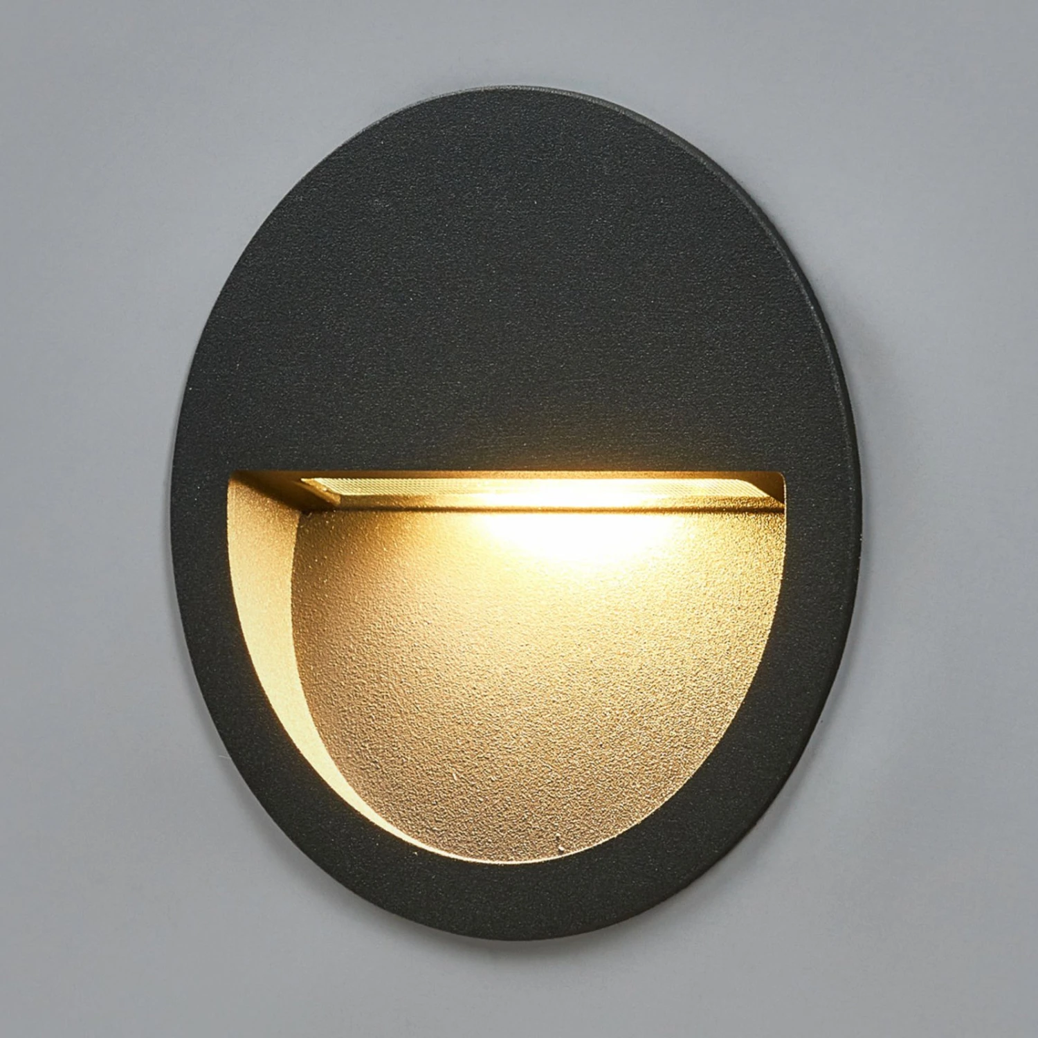 Kreisrunde LED-Wandeinbauleuchte Loya mit dunkelgrauer Oberfläche