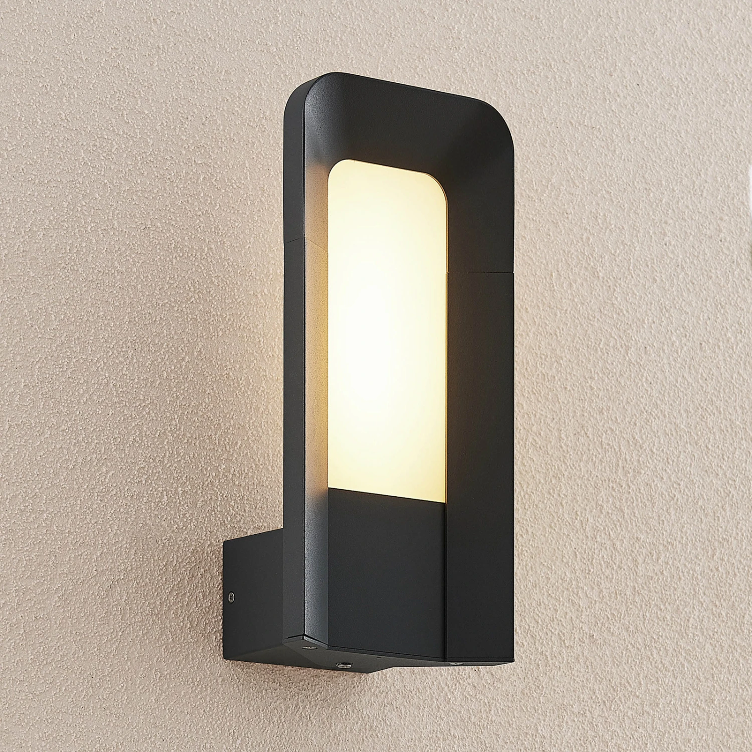 Die Optik und das Design der LED-Außenwandleuchte Secunda sind modern und bieten einen besonderen Blickfang. Der aus dunkelgrauem Aluminiumdruckguss bestehende Leuchtenkörper besitzt einen opalweißen Kunststoffdiffusor, der fast an ein LED-Panel erinnert. Die dahinter verbauten LEDs sorgen mit einem warmweißen und gleichmäßigen Lichtschein für eine blendfreie Beleuchtung, zum Beispiel im Bereich des Hauseingangs oder als Fassadenbeleuchtung.