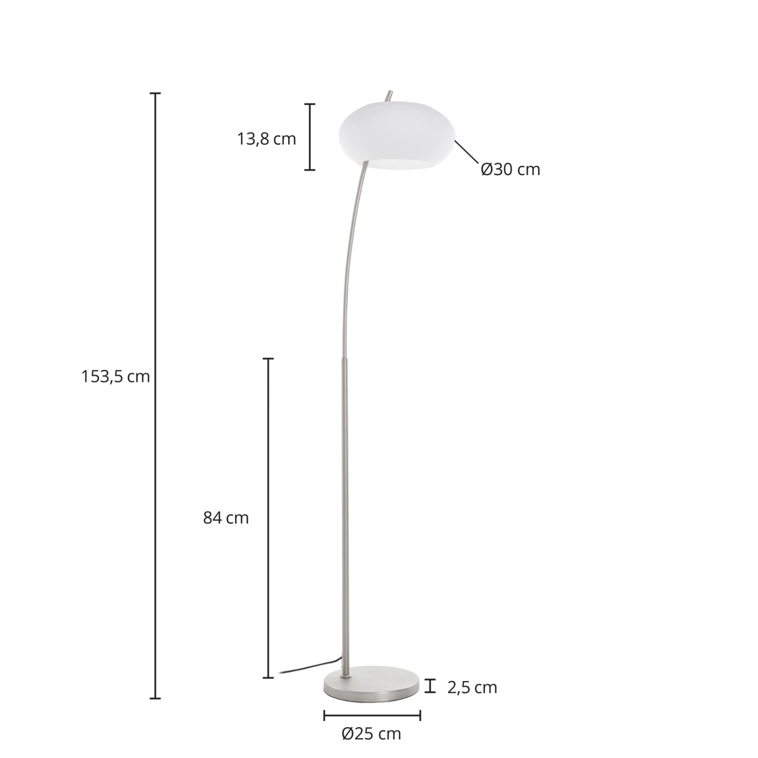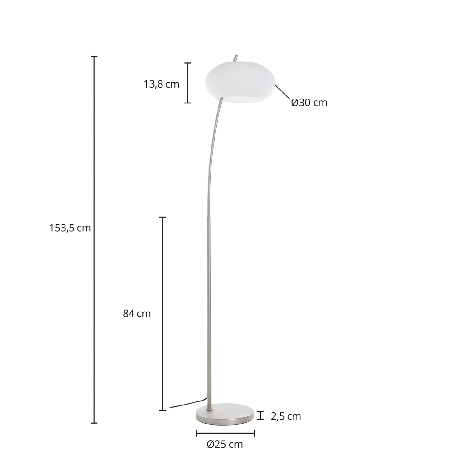 Stilvolle Stehleuchte Sharvil mit ovalem Glasschirm mit opalweißer Oberfläche, exklusives Design
