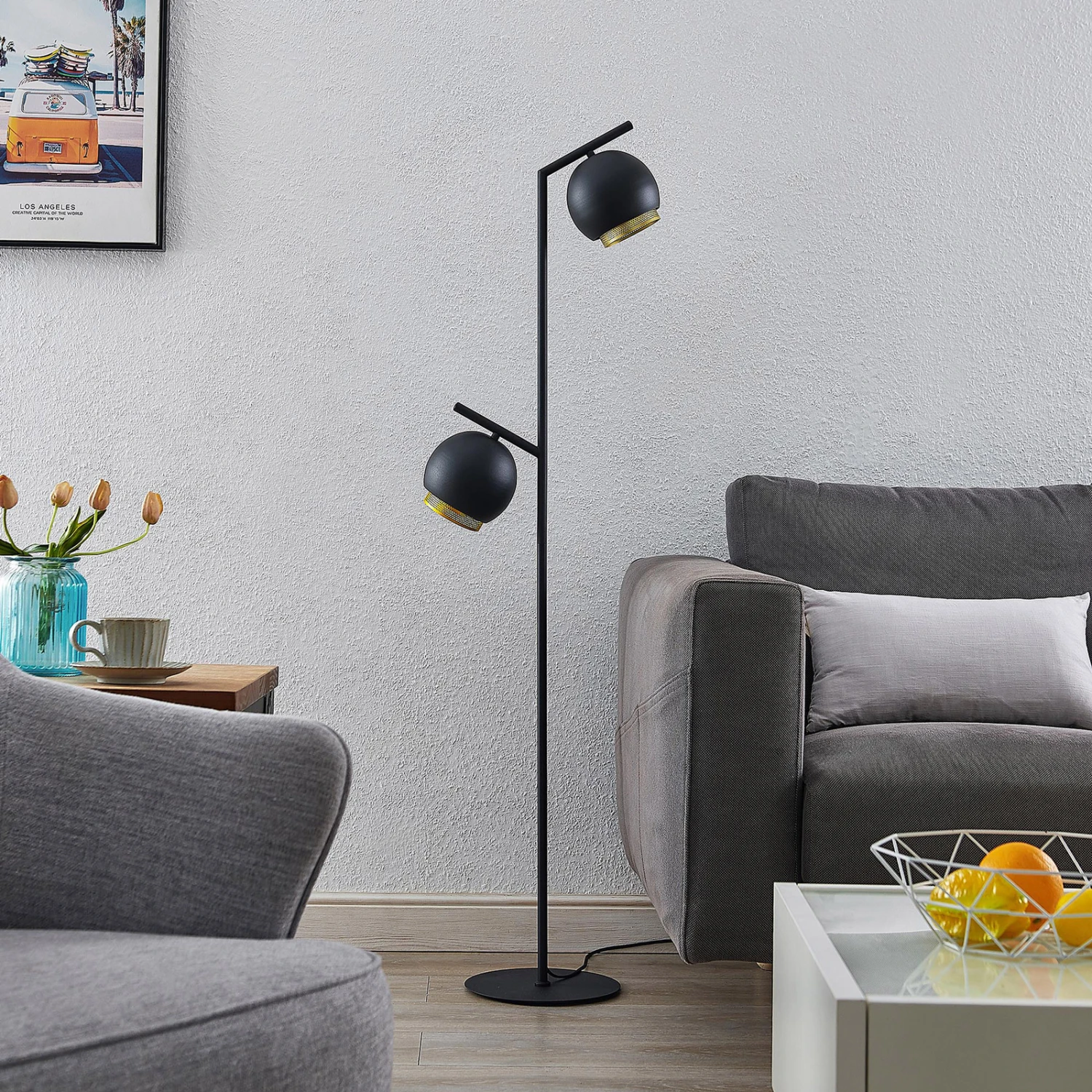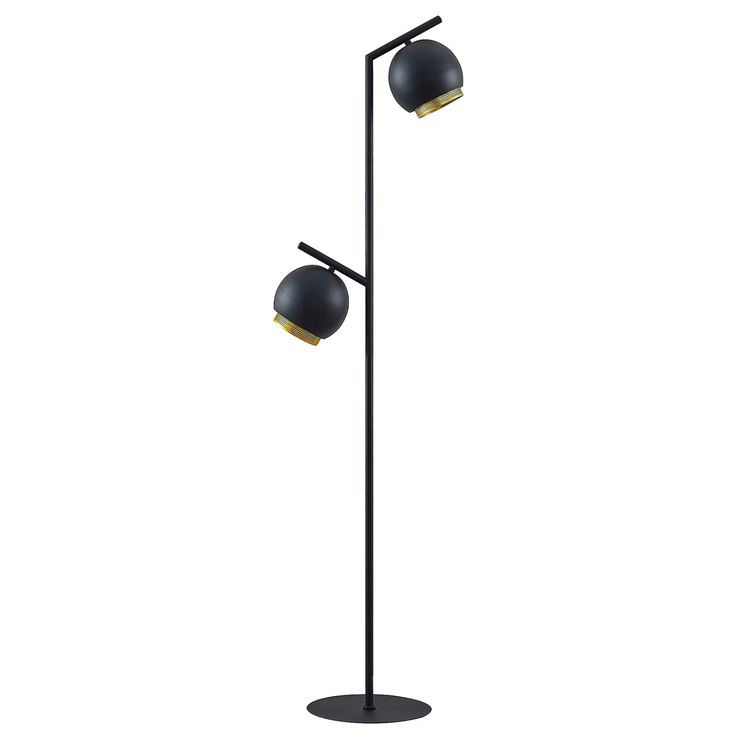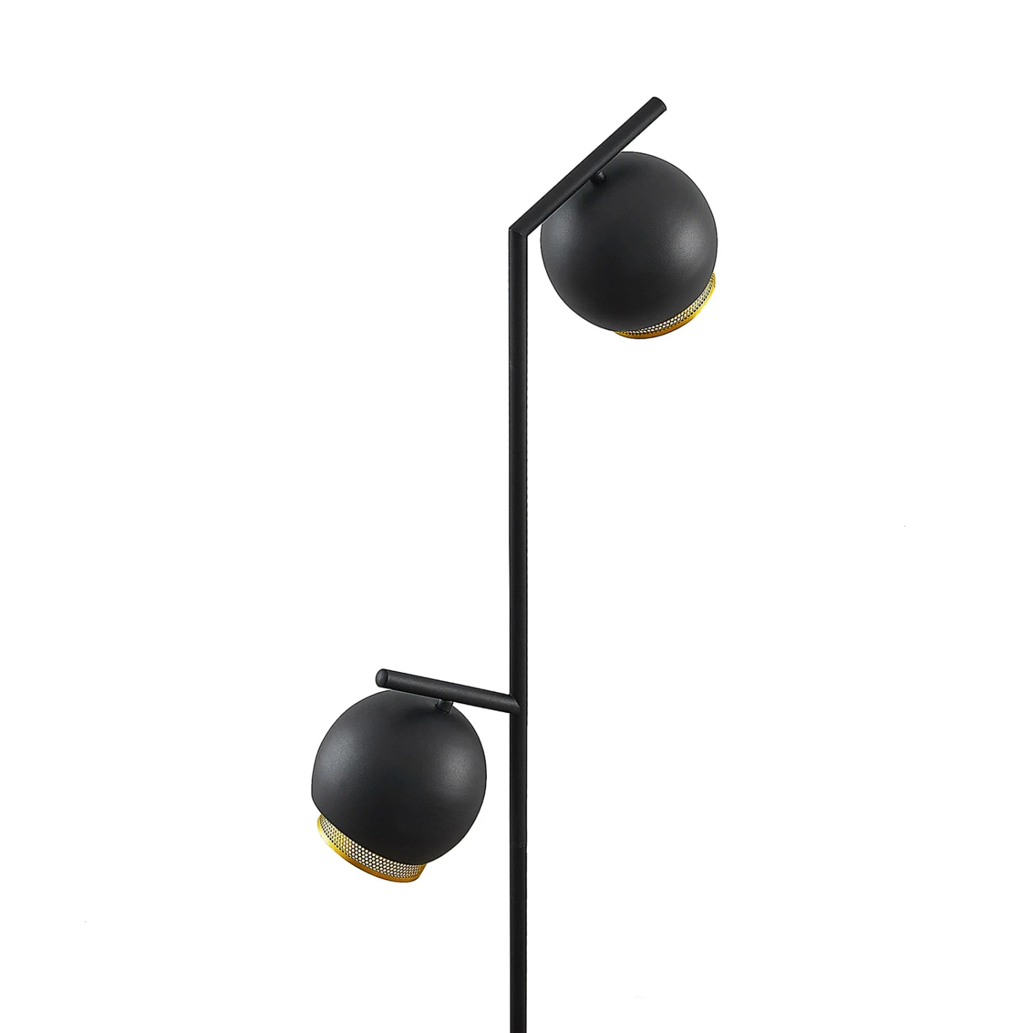Dunkle Stehleuchte Sivanel mit zwei kugelförmigen Doppelschirmen