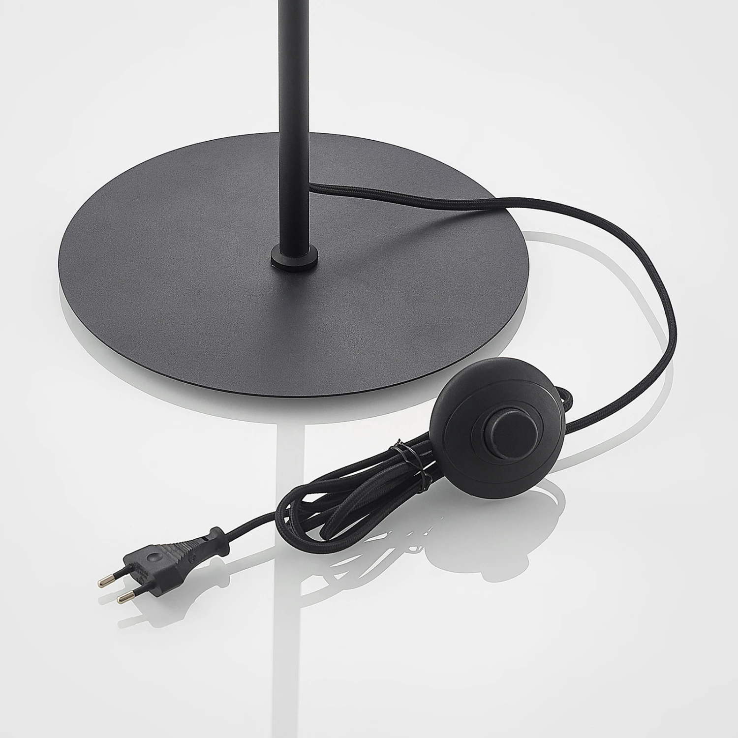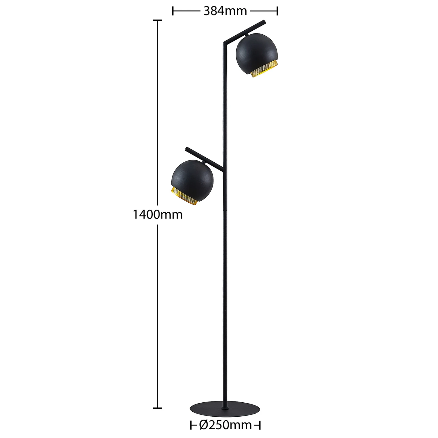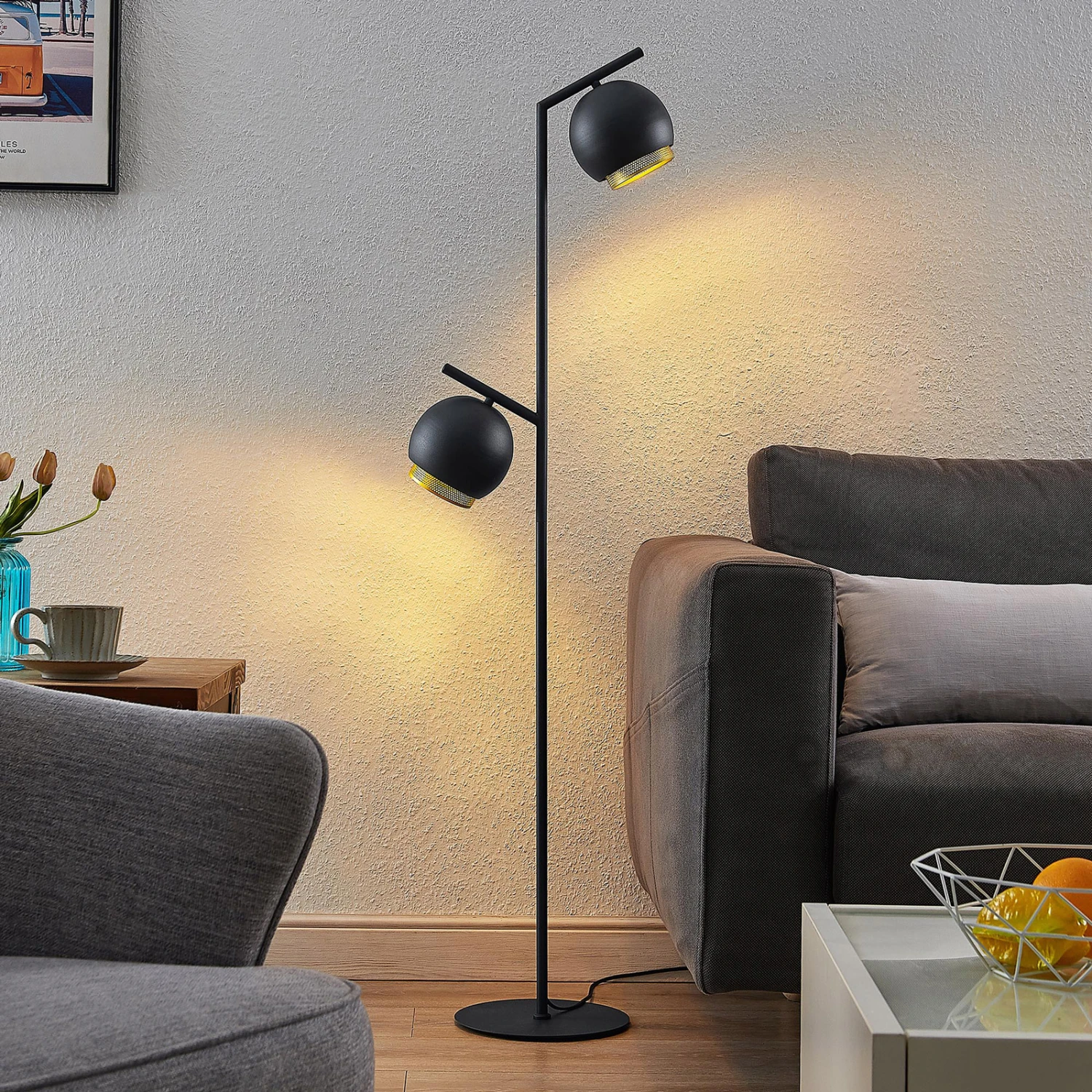 Dunkle Stehleuchte Sivanel mit zwei kugelförmigen Doppelschirmen