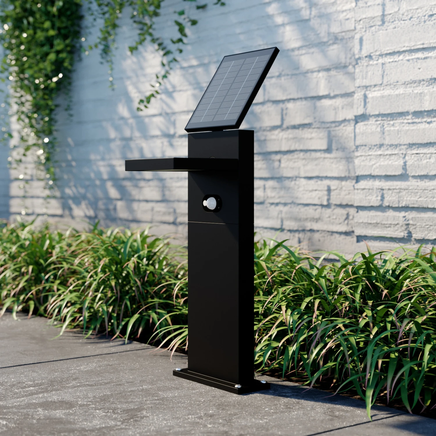 Die schlanke Wegeleuchte besticht durch ihr geradliniges Format aus leichtem und robustem Aluminium. Das farblich abgestimmte Solarmodul auf dem Kopf der Leuchte schließt diese elegant ab und wechselt automatisch in den Tag- beziehungsweise Nachtmodus. Der integrierte Sensor aktiviert das dezente Licht des opalenen PC-Diffusors bei Bewegungen oder sorgt nach Sonnenuntergang durchgängig für eine gedämpfte Lichtstimmung.