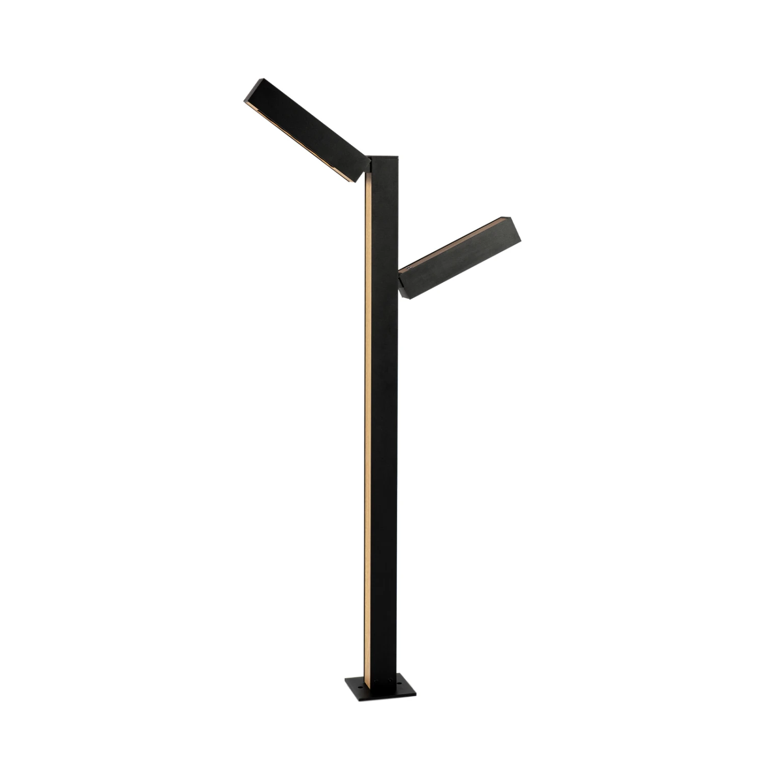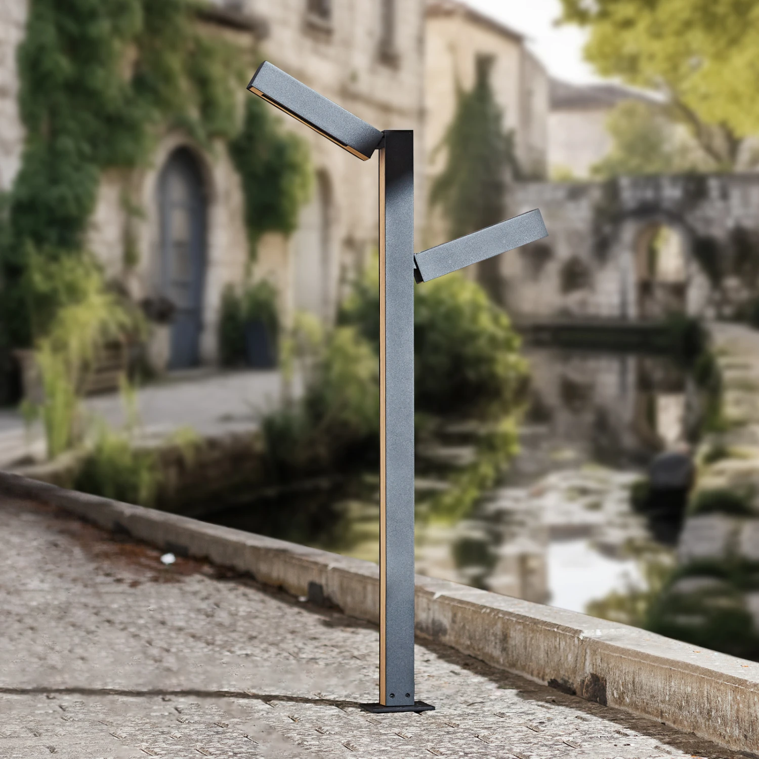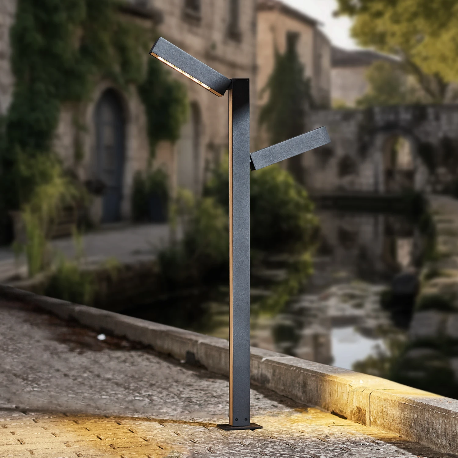 Außergewöhnliche LED-Wegeleuchte Taskalin mit zwei neigbaren Leuchtenköpfen