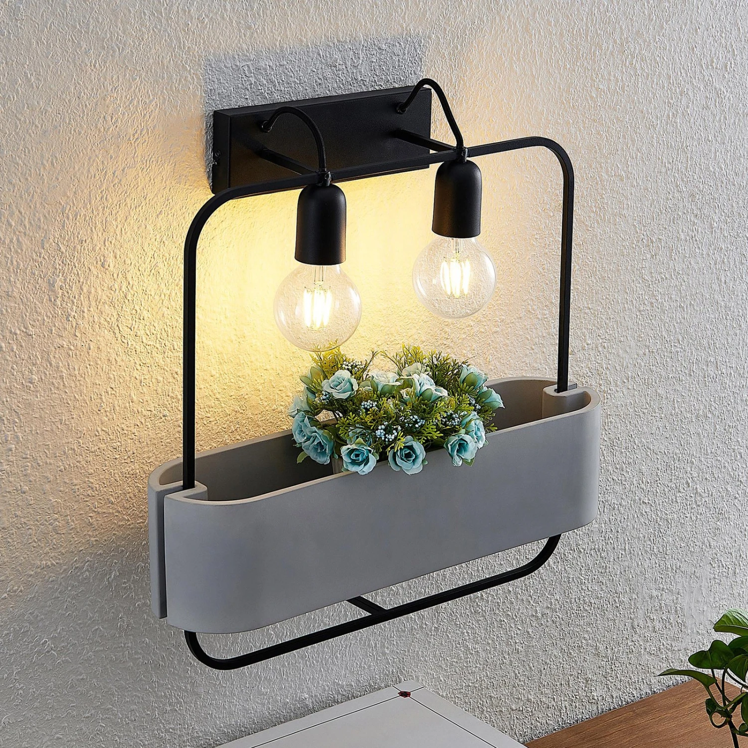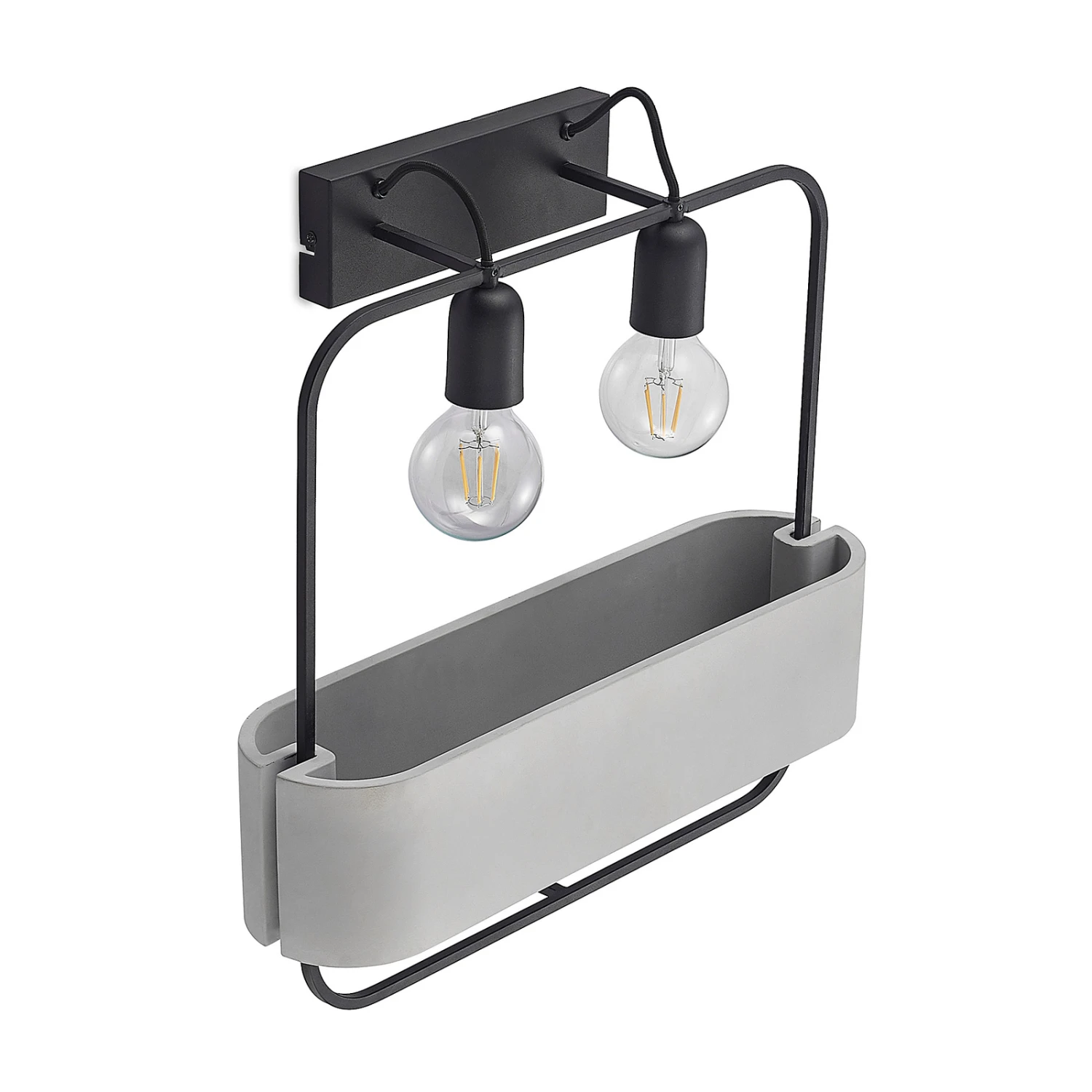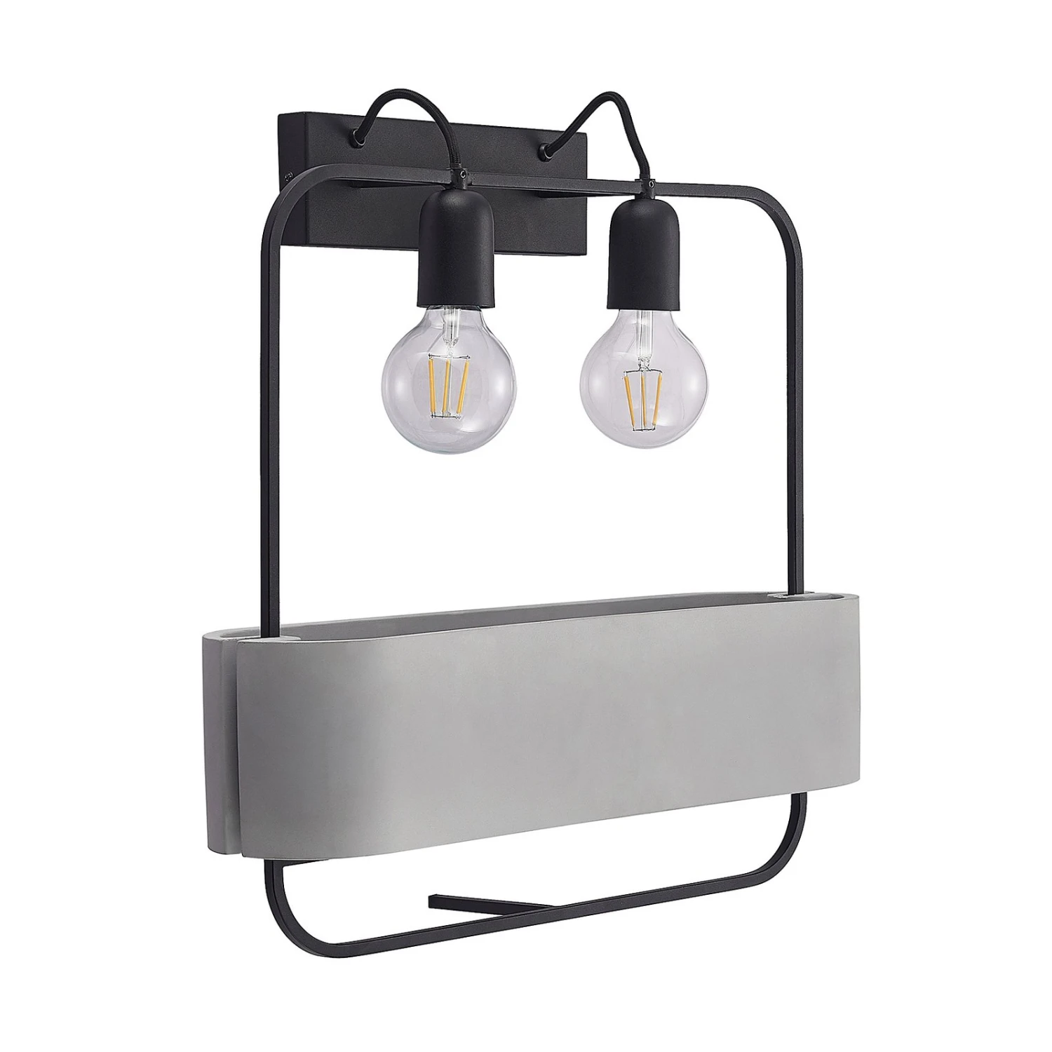 Extravagante Wandleuchte Teona mit Betonschale und schwarzem Metallrahmen