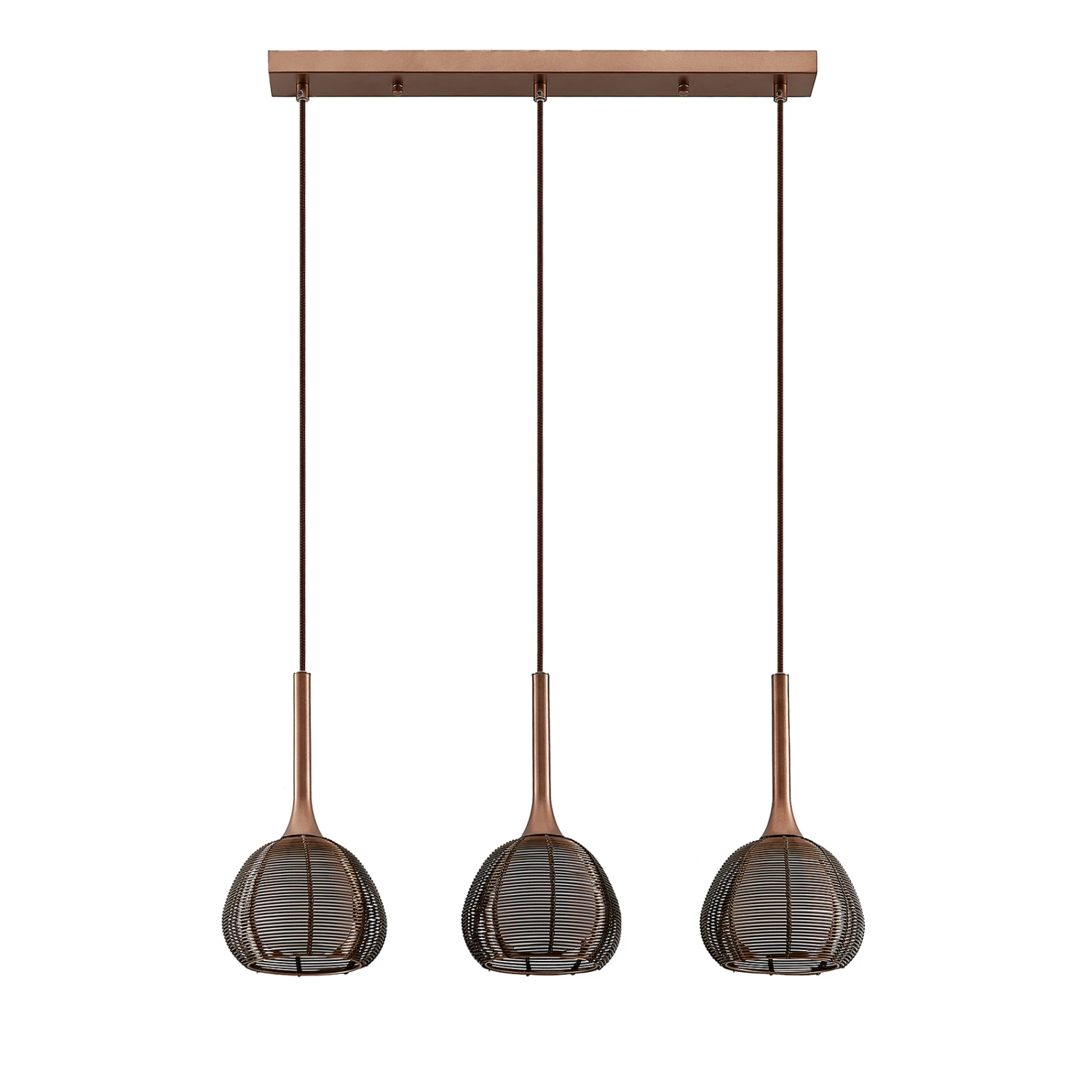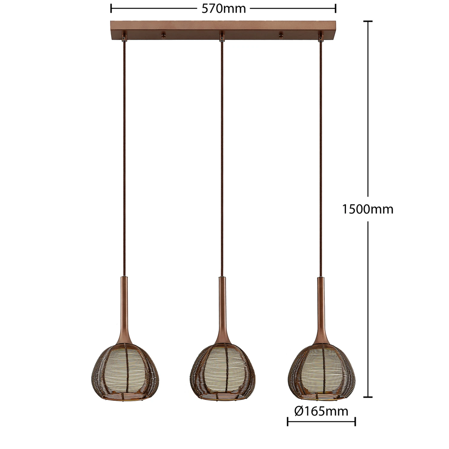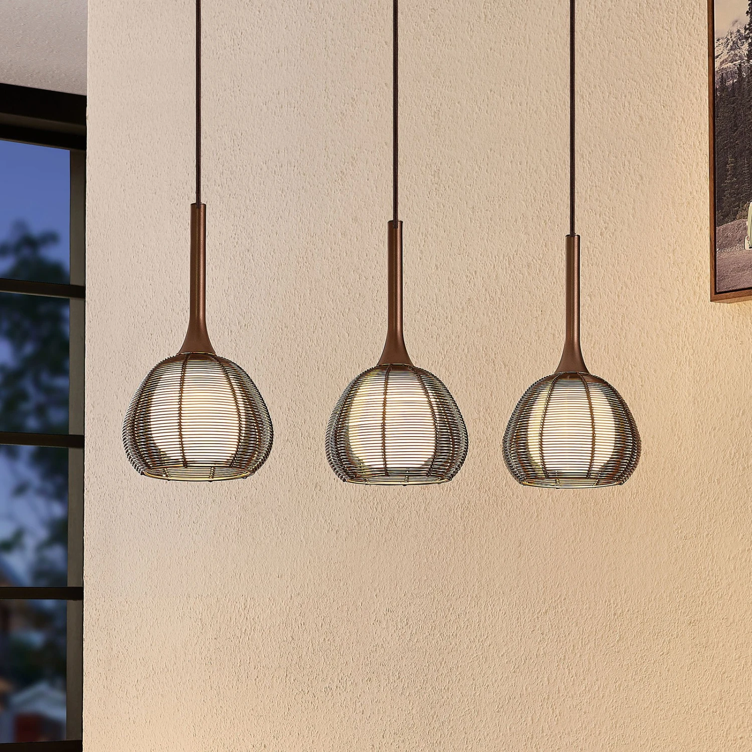 Dreiflammige Hängeleuchte Tetira mit brauner Oberfläche und attraktiven Käfigschirmen aus Metall und Glas
