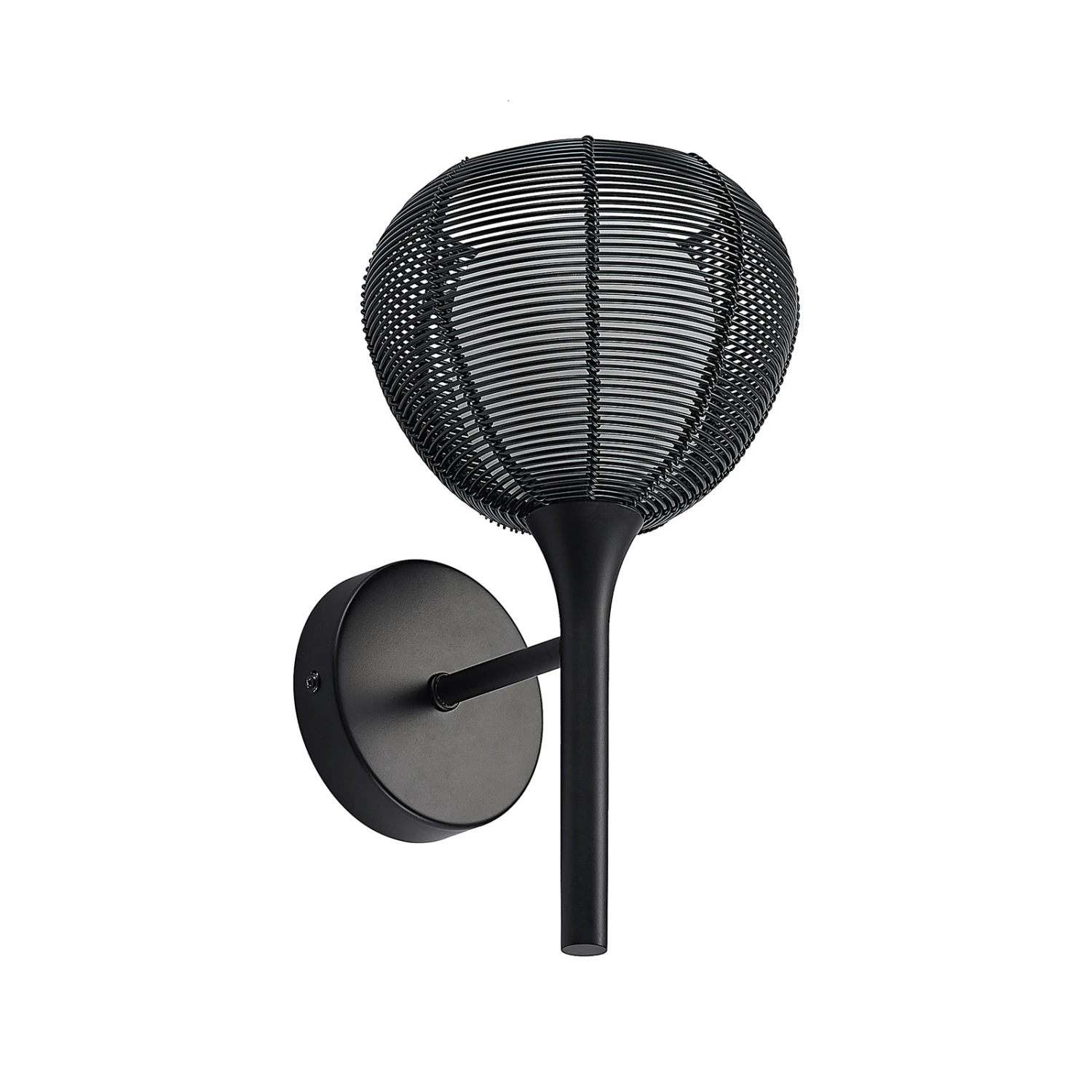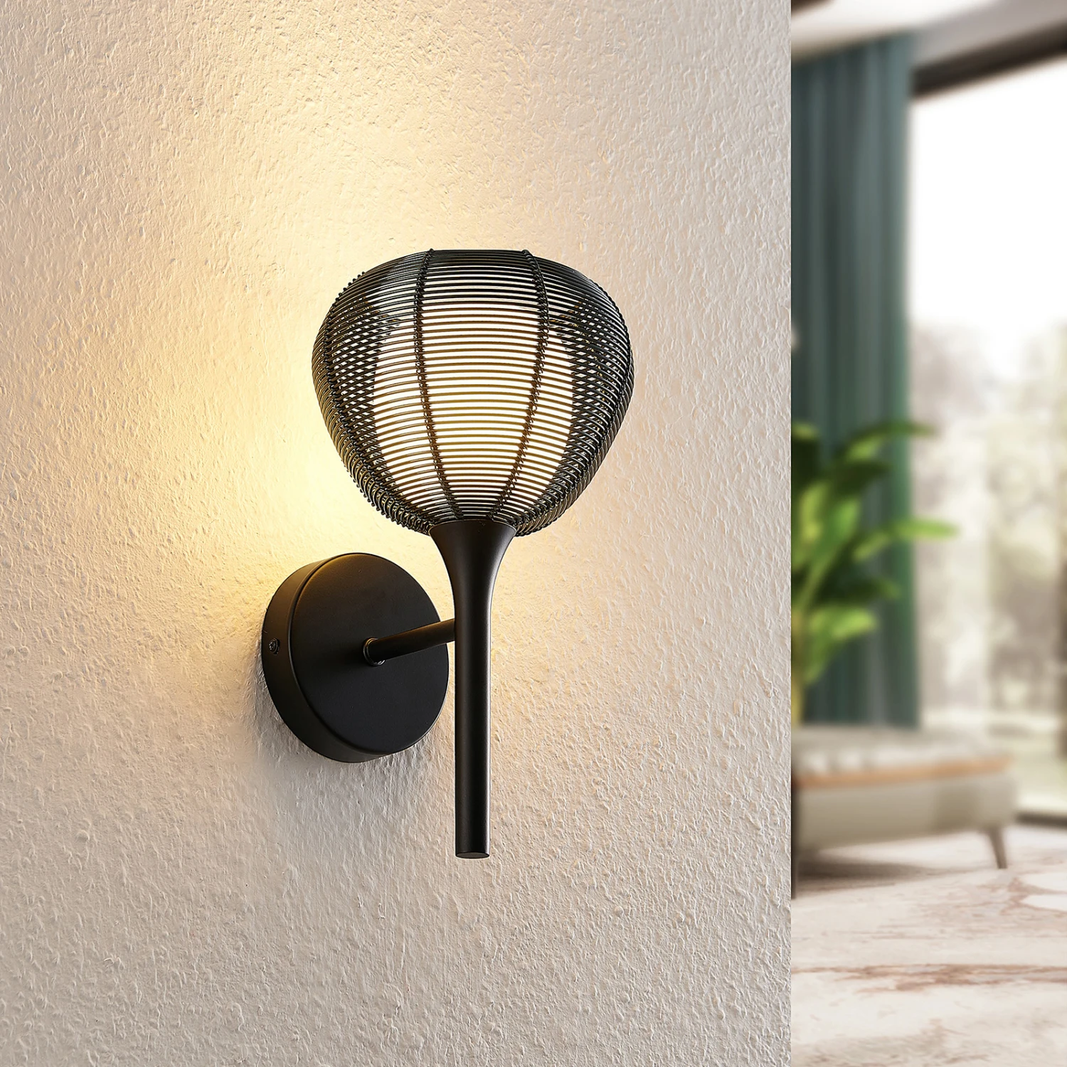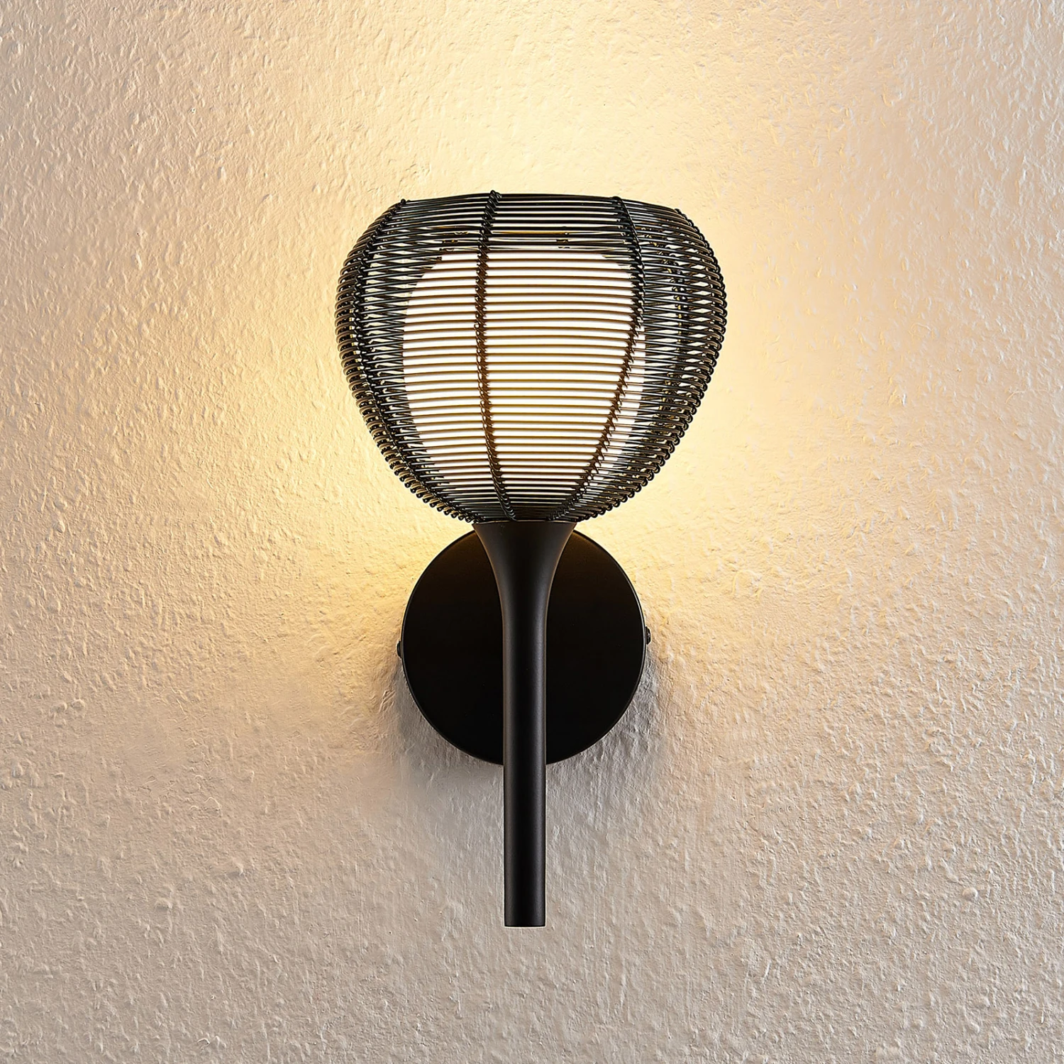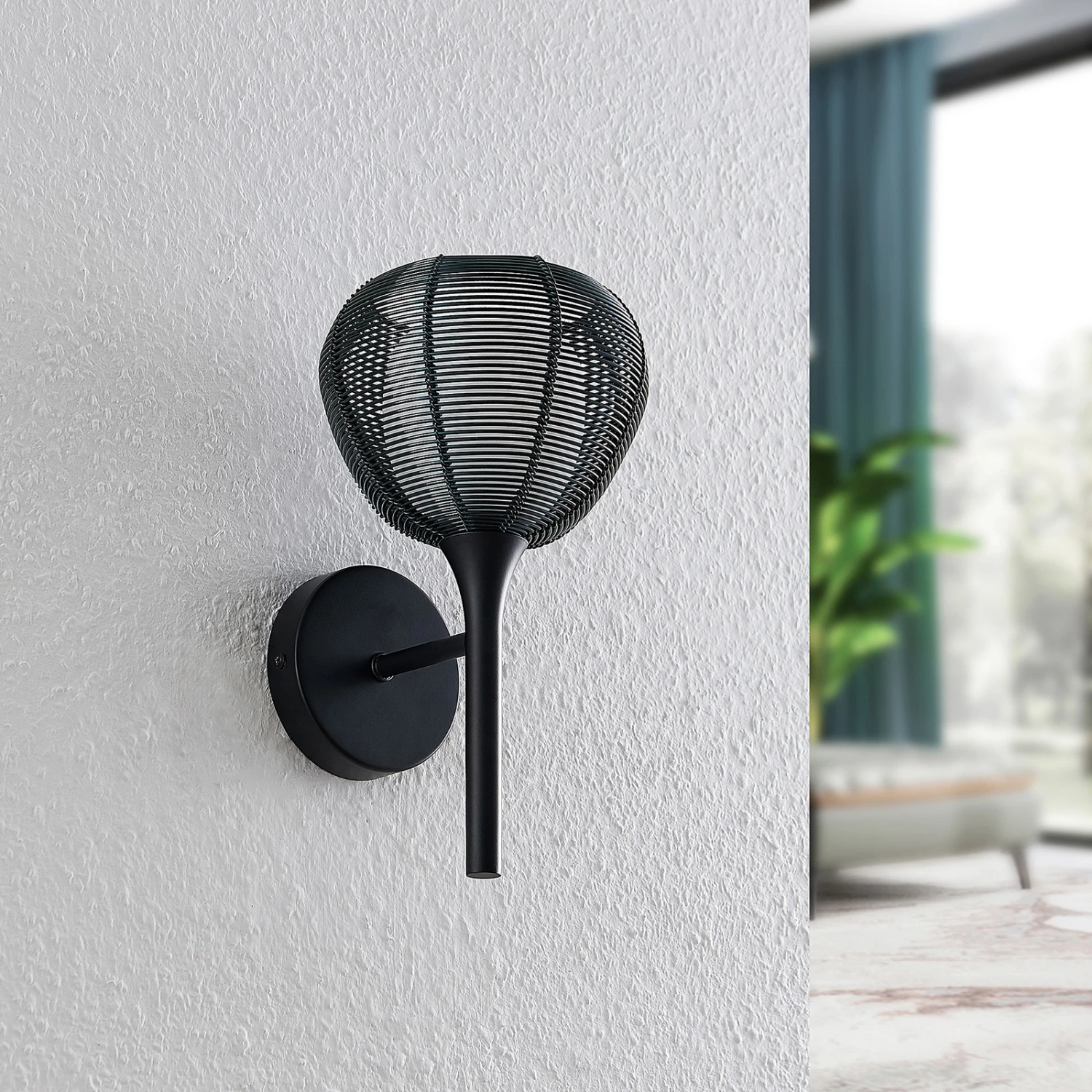 Elegante Wandlampe Tetira mit schönem, bauchigem Käfigschirm in Schwarz