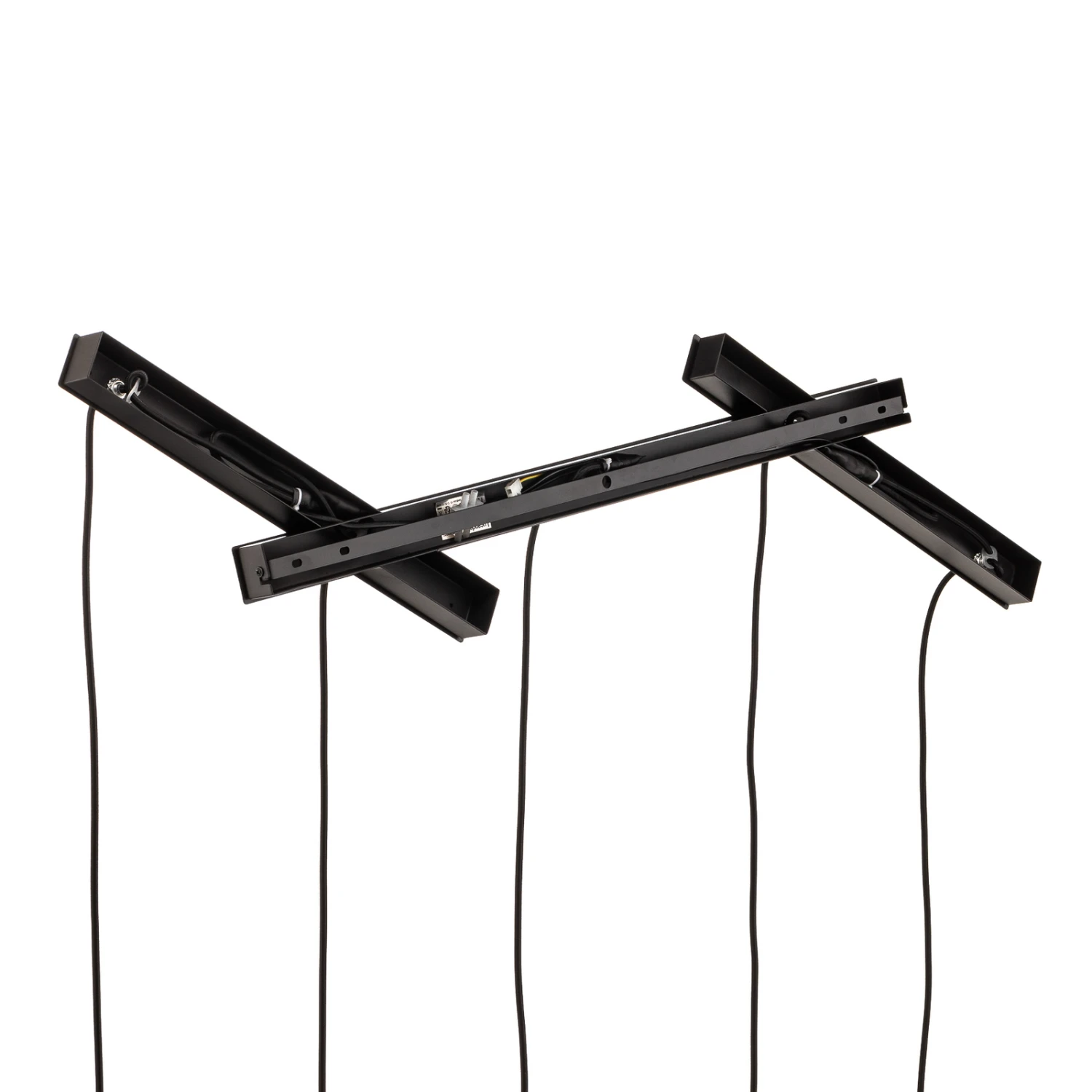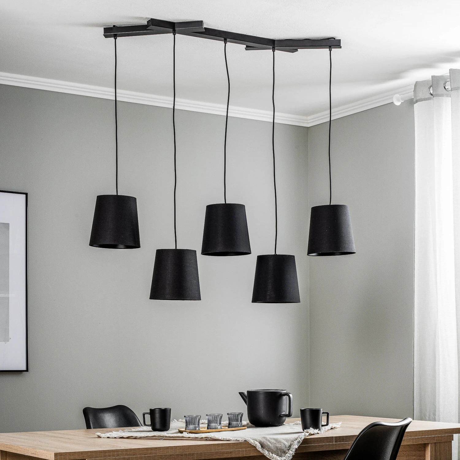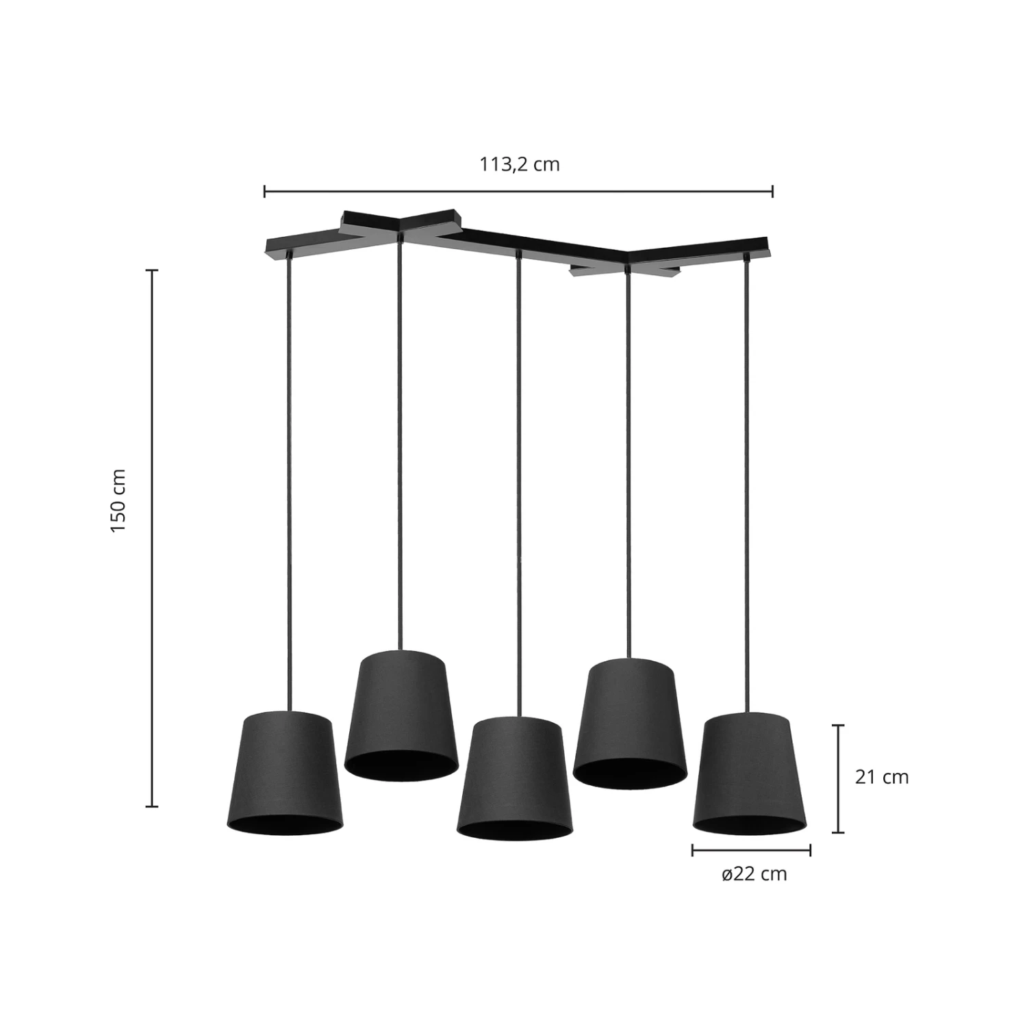 Fünfflammige Stoff-Pendelleuchte Thamila mit schwarzen Schirmen