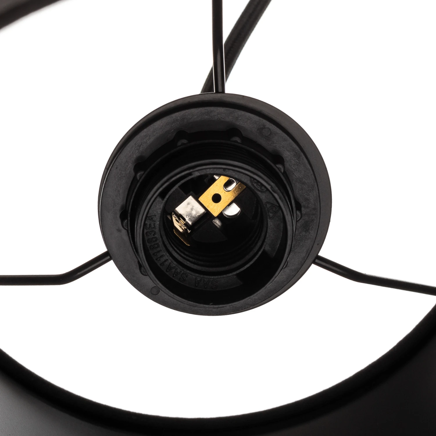 Thamila ist eine sehr ansprechende Textil-Pendelleuchte, die an vielen Stellen im Wohnraum ihren richtigen Platz findet. Sie ist mit fünf schwarzen Schirmen ausgestattet und bietet ein ganz gemütliches Licht, das zum Wohlfühlen einlädt. Im Esszimmer oder im Wohnraum ist das eine echte Bereicherung, zumal das Licht durch die schwarze Tönung der Schirme sanft abgeblendet nach außen tritt und nur nach unten der volle Lichtschein entweicht, damit die Tischfläche oder der Tresen gut und hell beleuchtet werden können. Die Deckenhalterung besteht aus gekreuzten Streben und die Schirme hängen daher etwas versetzt, was dem Erscheinungsbild sehr zuträglich ist.