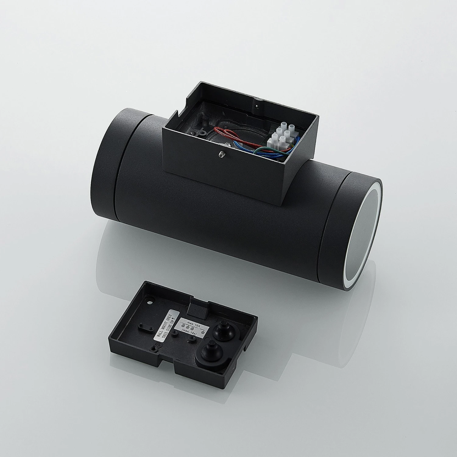 Diese Außenwandleuchte punktet mit ihrer Zweiflammigkeit und der Lichtabgabe nach oben und unten. Im Außenbereich sieht das schon von Weitem sehr effektvoll aus. Eingesetzt werden können herkömmliche E27-Lampen, gerne mit effizienter LED-Technologie. Der Leuchtenkörper ist aus Aluminiumdruckguss gefertigt und und hat eine dunkelgraue Oberfläche, die wie die Zylinderform so zeitlos ist, dass man die Leuchte besonders vielseitig einsetzen kann. Mit der hohen Schutzart besteht bester Schutz vor Nässe und Schmutz.