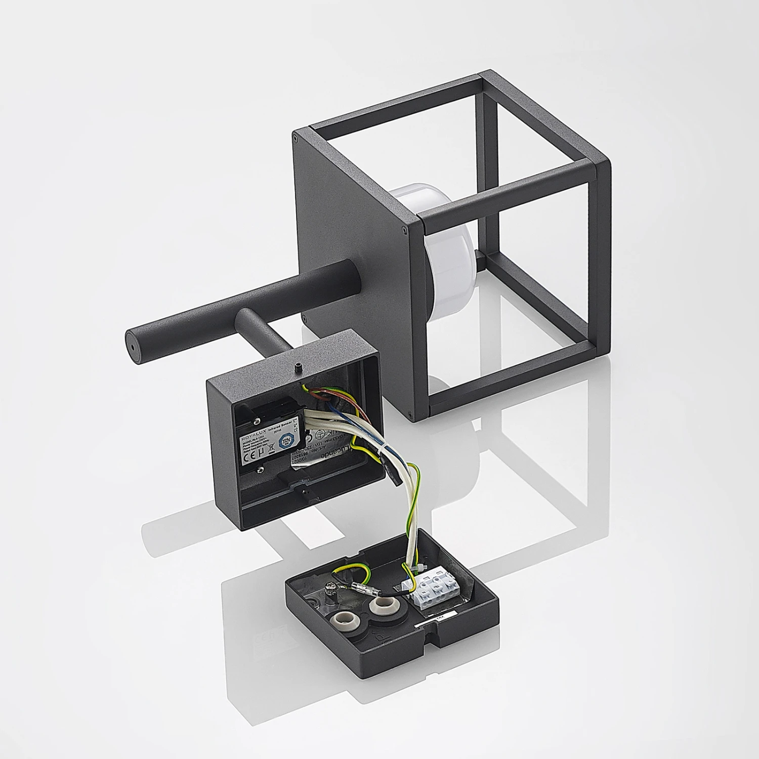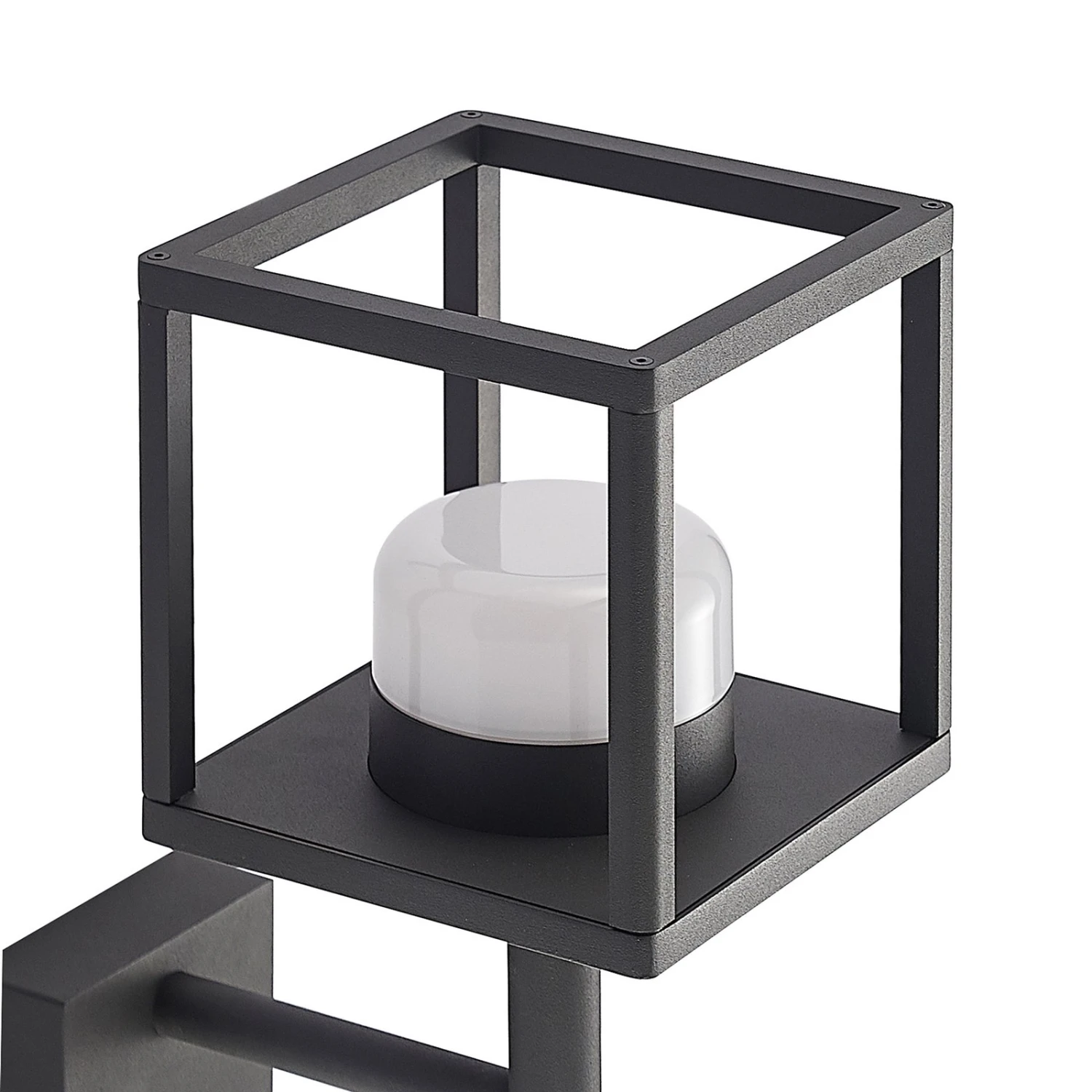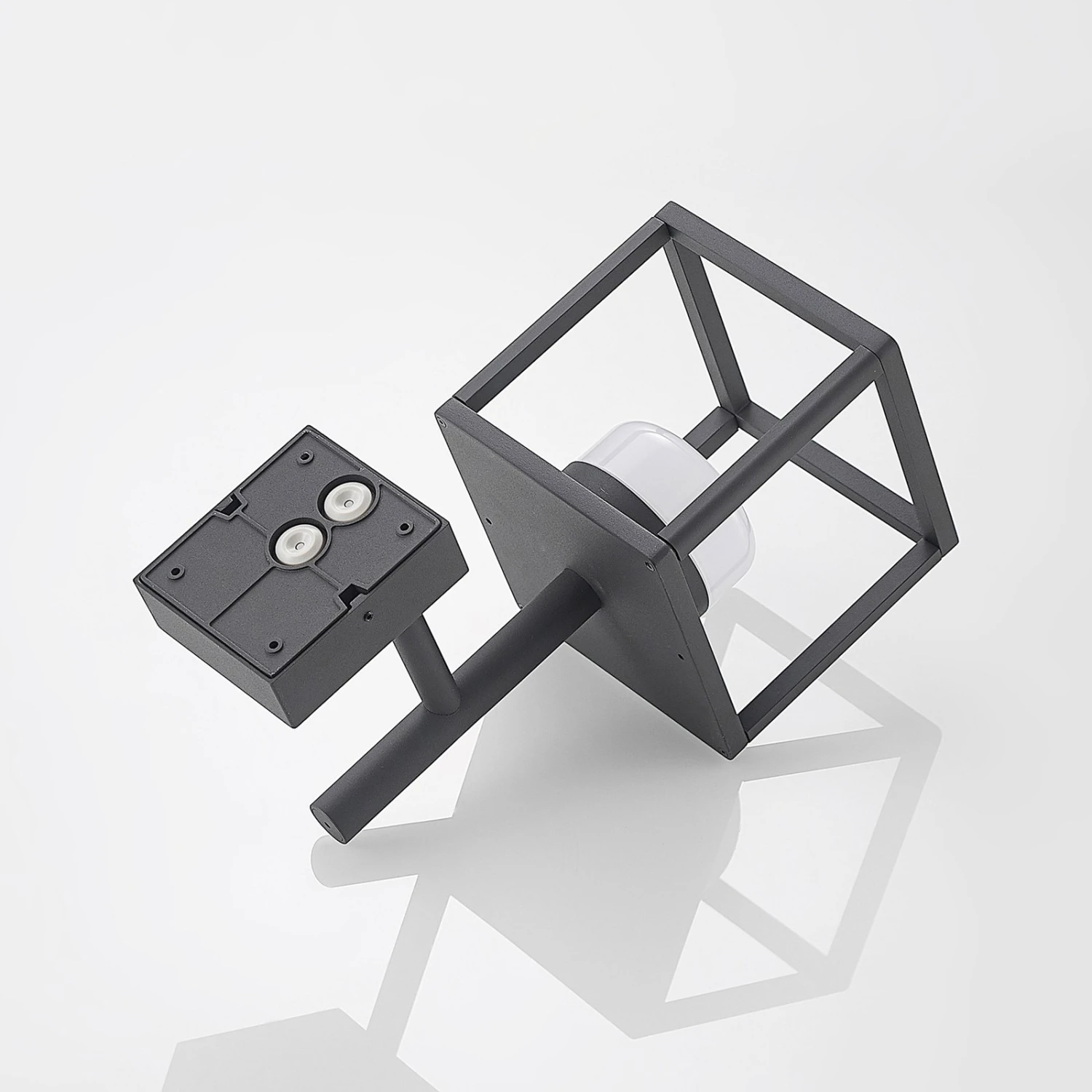 Die Außenwandlampe Timio lässt keine Wünsche offen. Dank ihrer guten Schutzart kann sie lange im Außenbereich dienen und sieht im Bereich des Eingangs oder der Terrasse äußerst attraktiv aus. Das dunkelgraue Gestell aus Aluminium ist geprägt von geometrischen Formen und passt sehr gut in moderne Umgebungen.