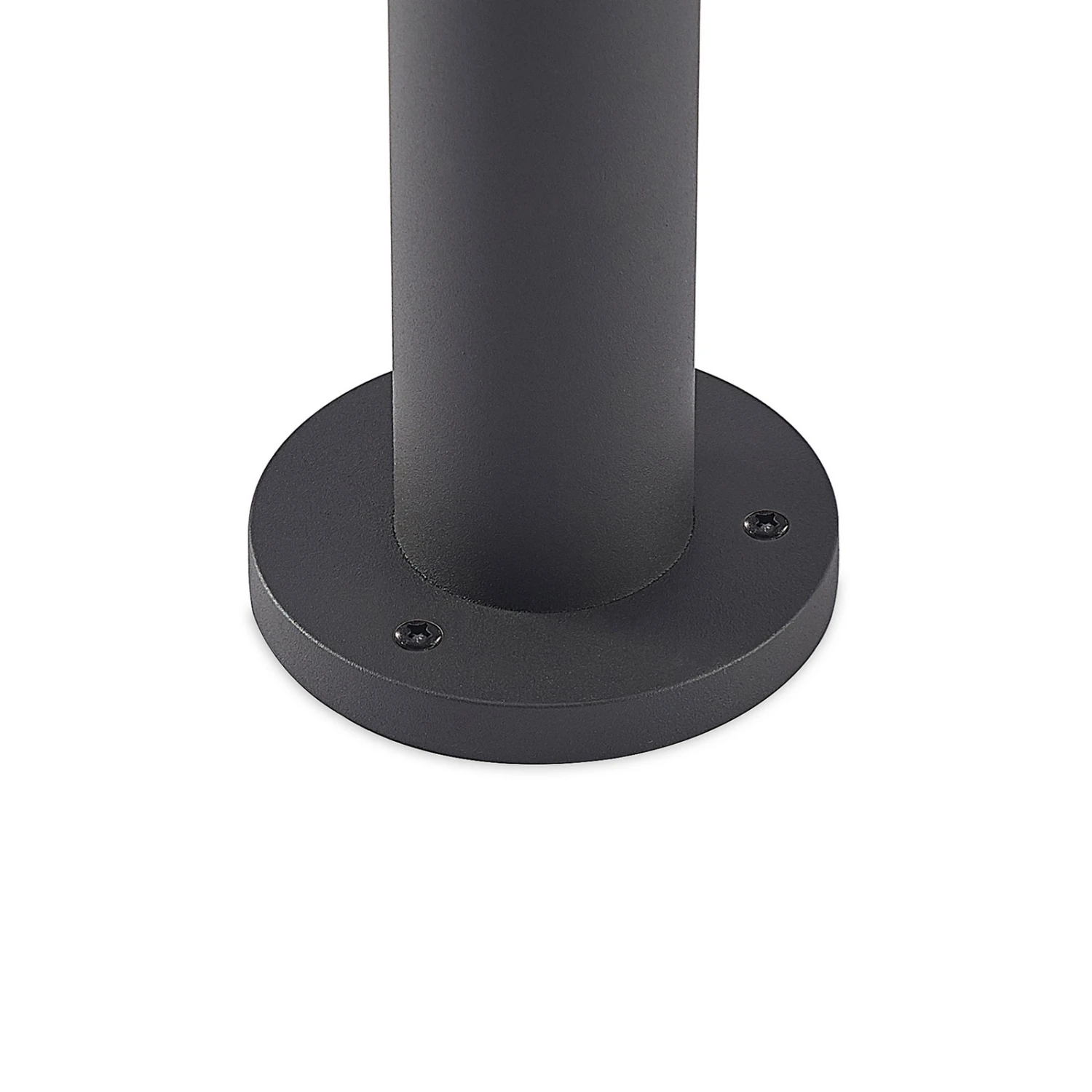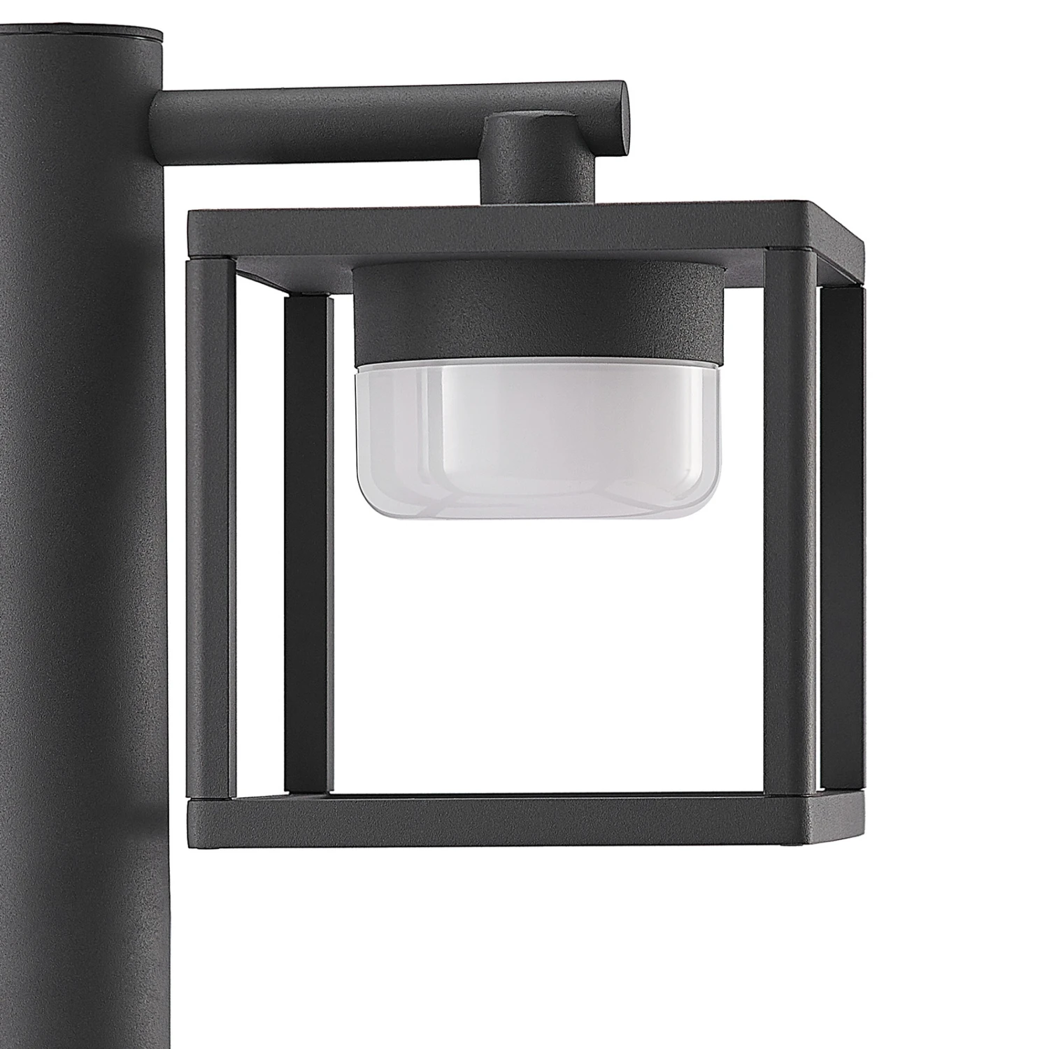 Die Wegeleuchte Timio besitzt ein stabiles Gestell aus Aluminium, das in einem trendigen Dunkelgrau gestaltet wurde. Während der Ständer eine zylindrische Form besitzt, ist die weiße Schirmabdeckung von einem quaderförmigen Rahmen übgeben. Dieses Design lässt sich hervorragend mit modernen Gestaltungsmöglichkeiten kombinieren und kommt auf einem Gartenweg oder in der Nähe der Terrasse sehr schön zur Geltung. Die gute Schutzart sorgt dafür, dass die Wegeleuchte witterungsbeständig ist und lange dienen kann.