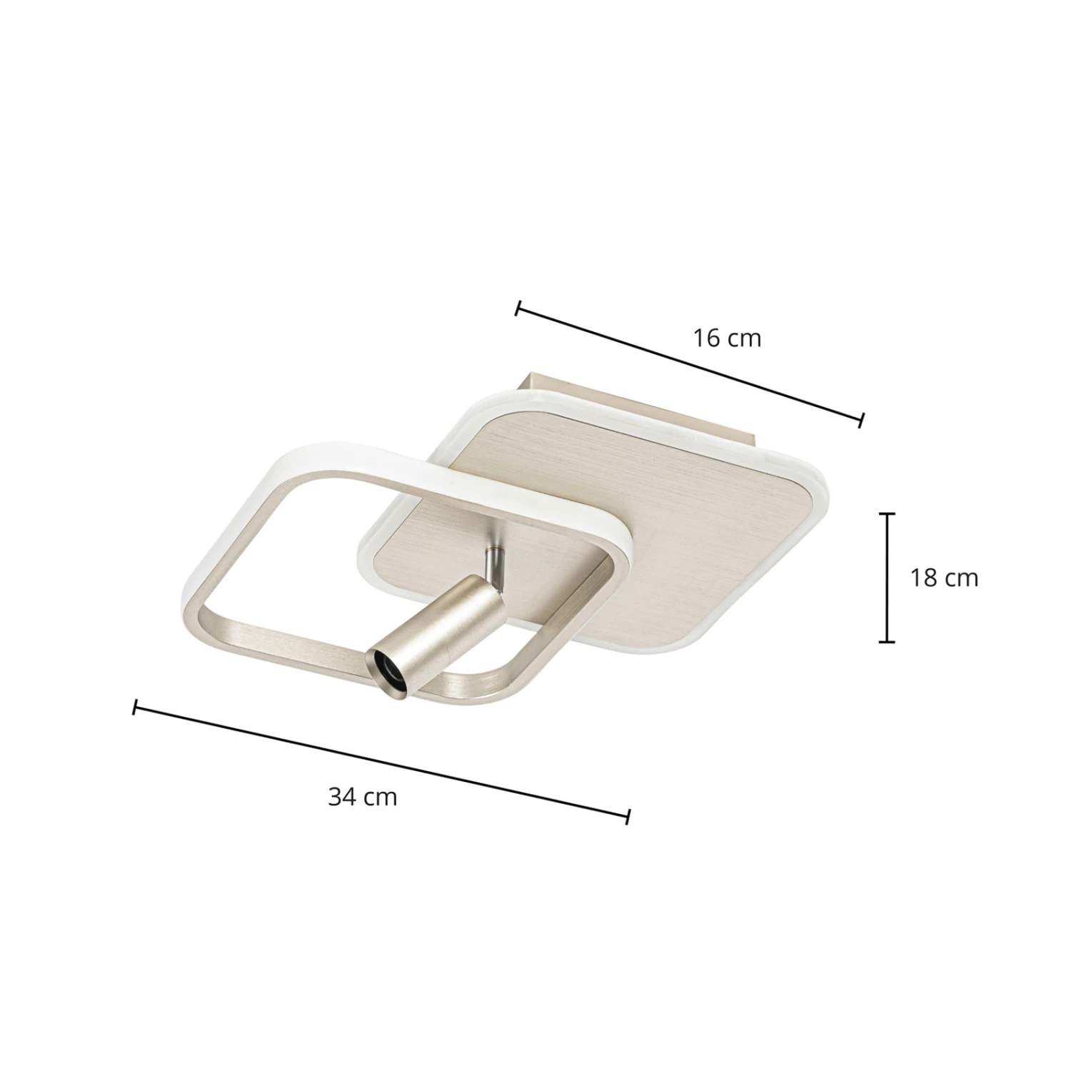 Nickelfarbene LED-Deckenleuchte Tival in eckiger Form
