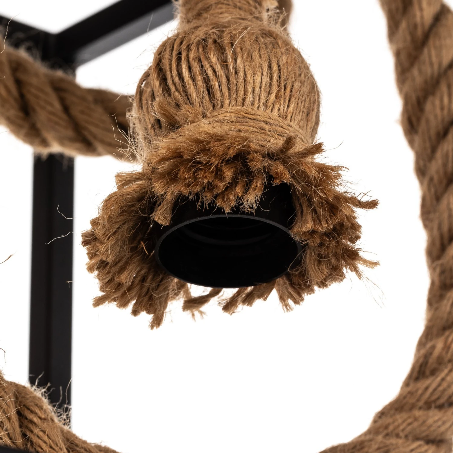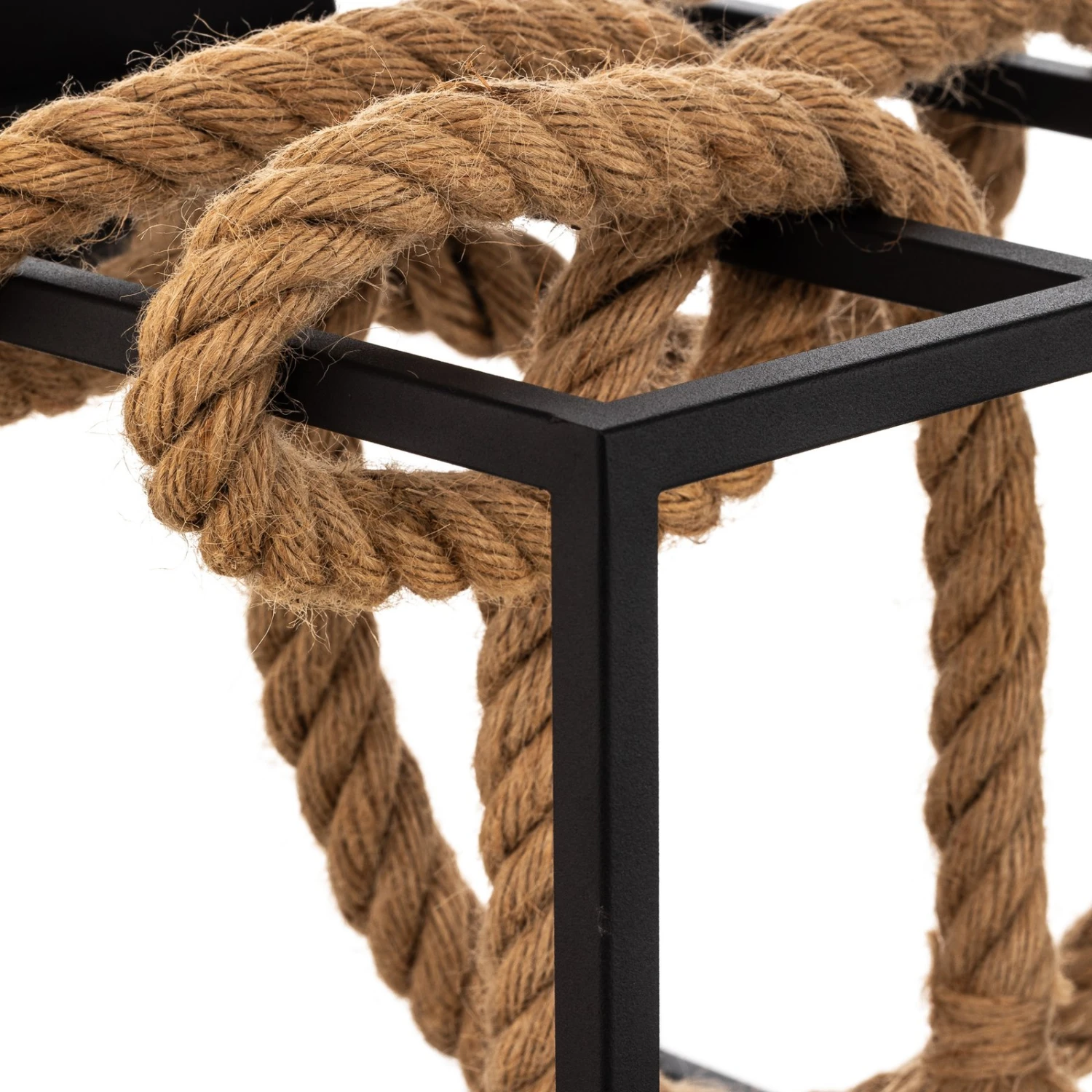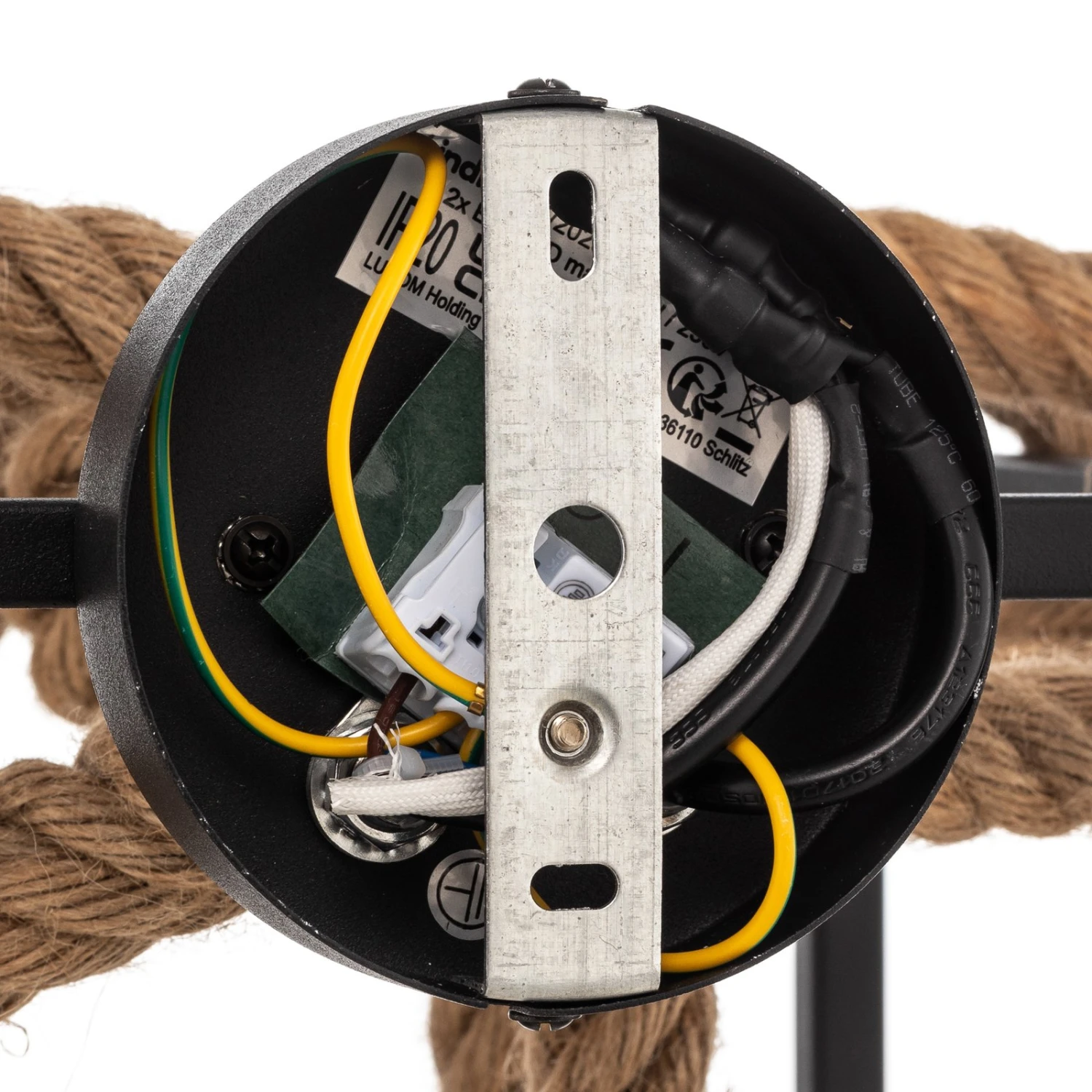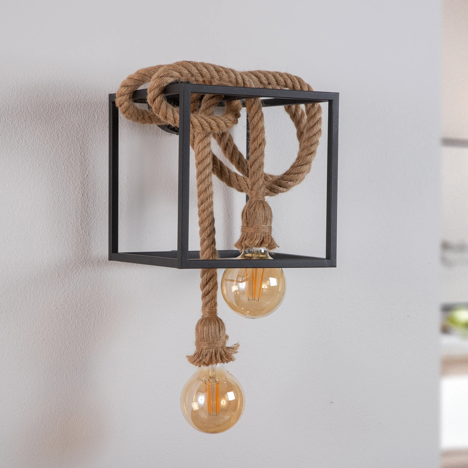 Schwarze, kastenförmige Wandleuchte Vlados mit zwei Fassungen und einem Hanfseilkonstrukt, exklusives Design