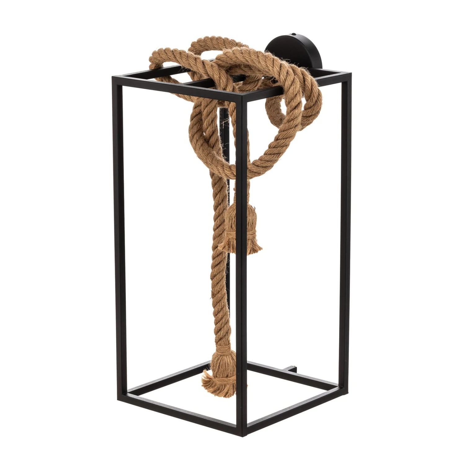 Zweiflammige Design-Wandleuchte Vlados mit Käfig-Rahmen-Konstrukt und zwei hellen Hanfseilen