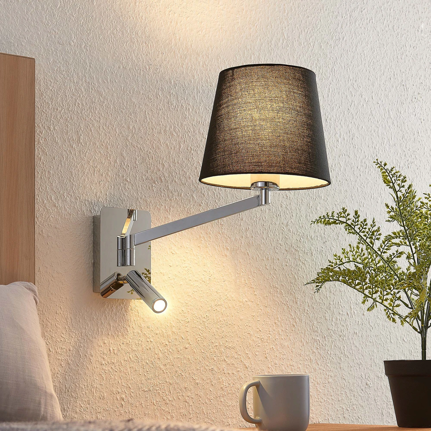 Elegante Wandleuchte Irella mit Textilschirm und zusätzlichem Leselicht