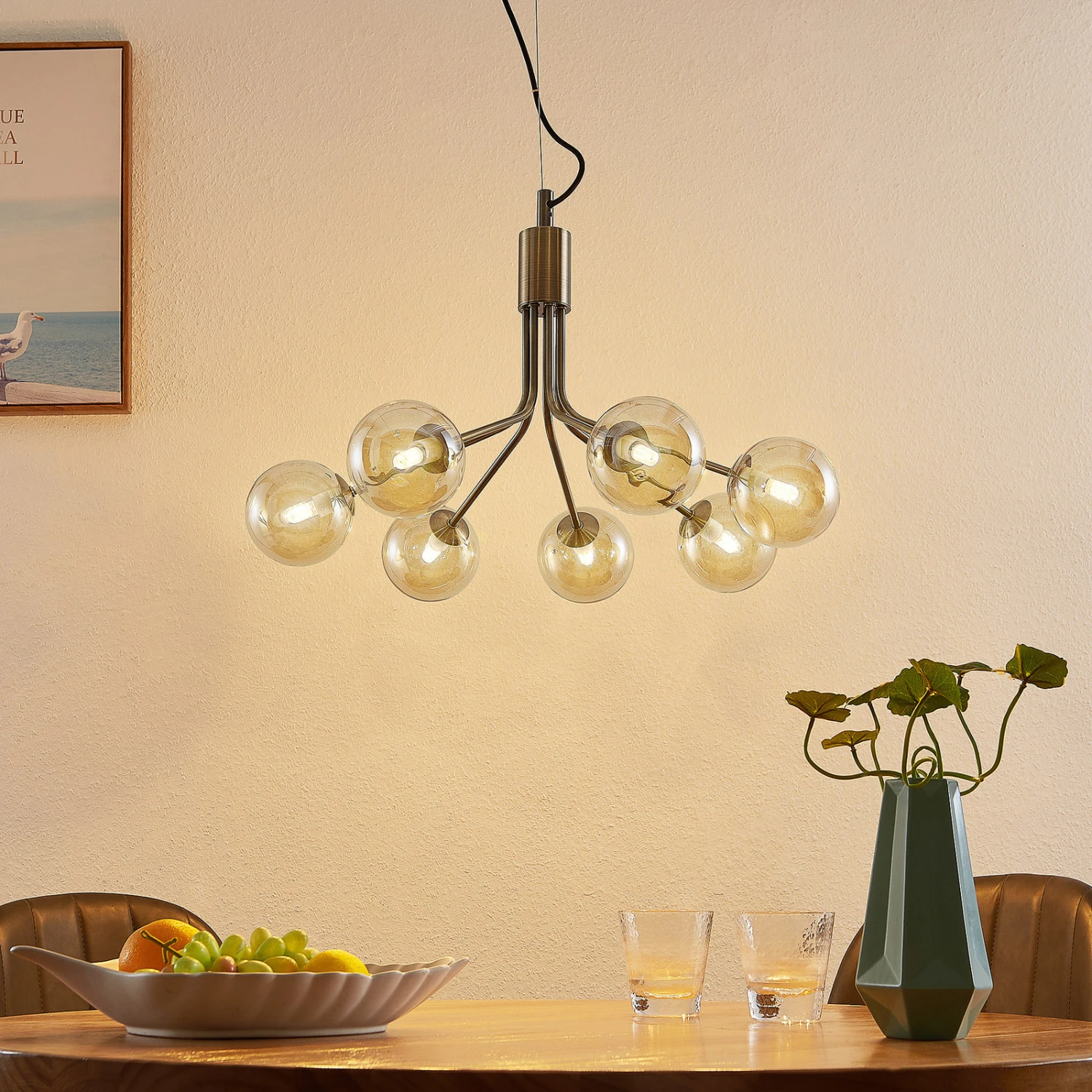 Wynona ist eine sehr elegante Pendelleuchte, die hervorragend zur Tischbeleuchtung im Wohn- und Essbereich genutzt werden kann und deren Schirme aus kugelförmigem Klarglas mit amberfarbener Tönung und einer attraktiven Rillenoptik bestehen. So kann auch das Lichtbild wirkungsvoll beeinflusst werden und strahlt etwas besonders Gemütliches aus. Das sind die besten Voraussetzungen, um über dem Esstisch eine angenehme und wohnliche Atmosphäre zu kreieren, denn er ist selten der Ort reiner Nahrungsaufnahme, sondern immer auch ein Platz sozialer Zusammenkunft, sei es für das tägliche Zusammenkommen in der Familie, Feste und Feiern mit Verwandten oder ein Treffen und ein angeregtes Gespräch mit Freunden.