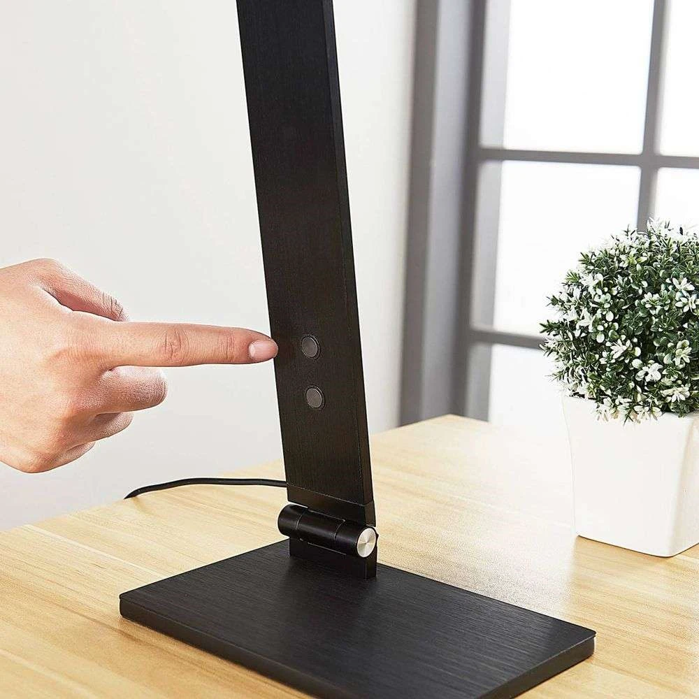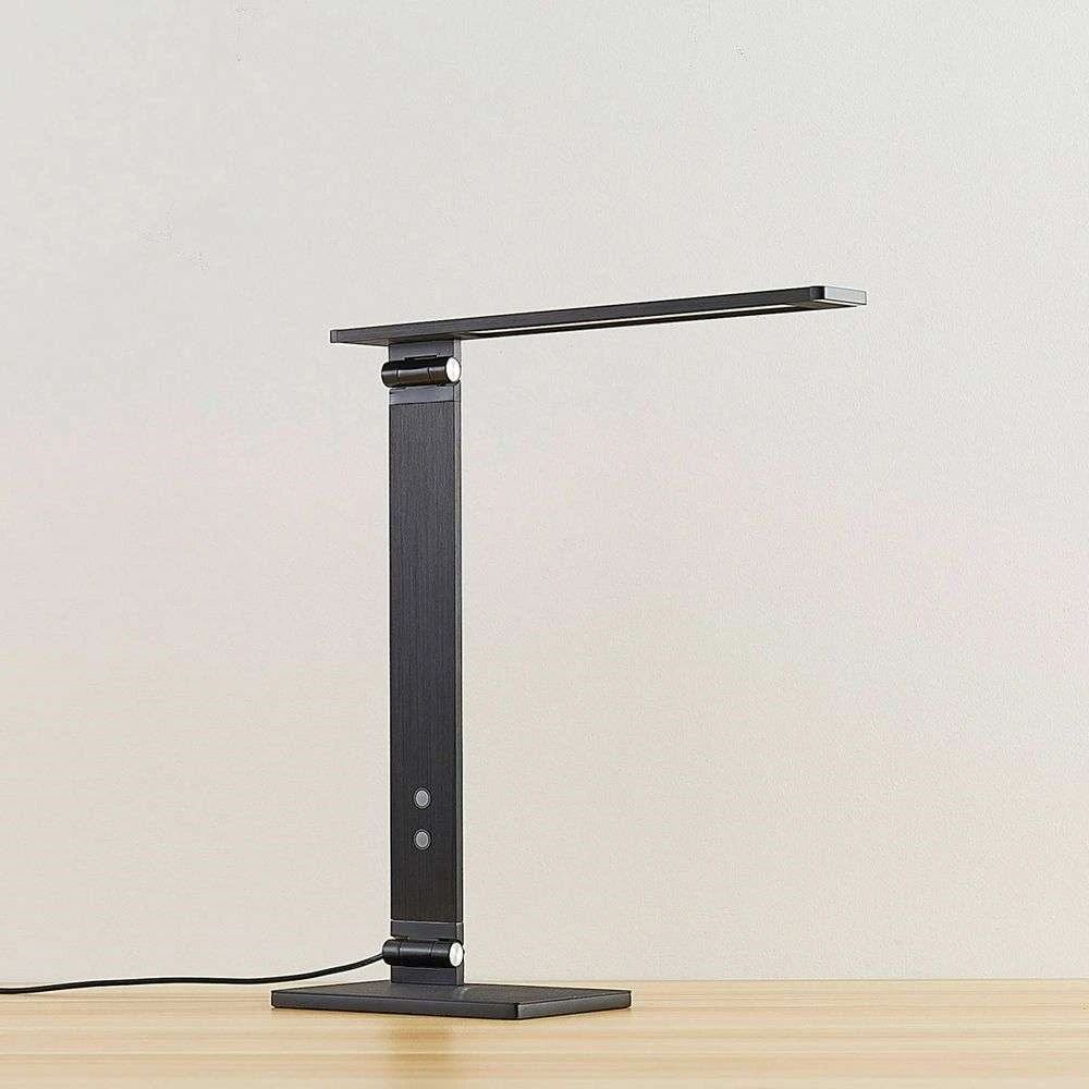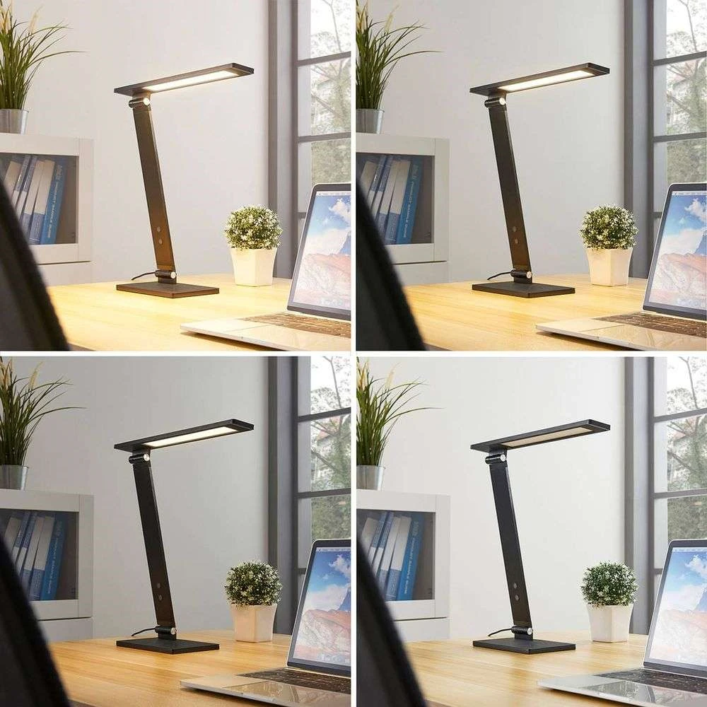 Die Salome Tischlampe Black ist eine funktionelle Schreibtischlampe mit platzsparendem Design, effizientem Licht und verschiedenen tollen Funktionen, mit denen Sie das Licht an Ihre individuellen Bedürfnisse anpassen können. Die flache, rechteckige Form macht es einfach, die Lampe in moderne Räume und Einrichtungsstile zu integrieren.