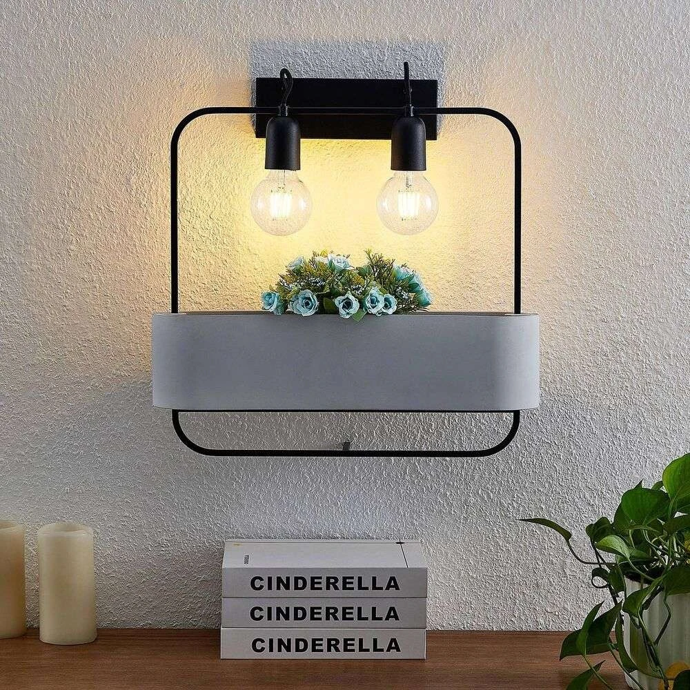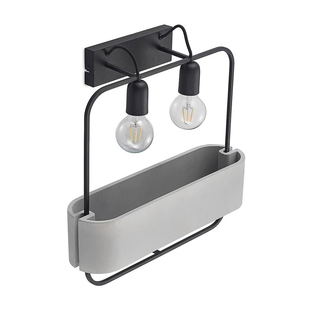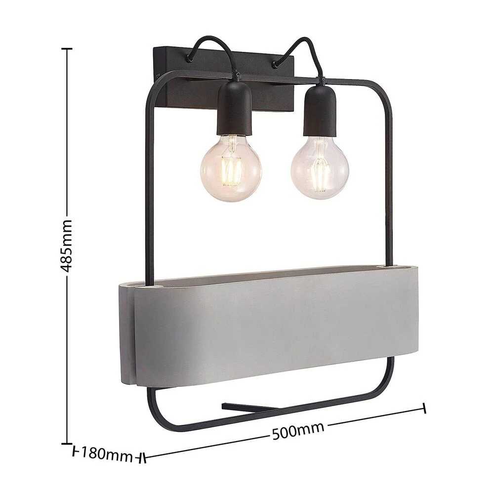Die Wandleuchte Teona Black/Grey ist ein Multitalent der Innenarchitektur und ein Traum für jedes Zuhause, das praktische Funktionalität liebt, die sogar je nach Geschmack und Bedarf personalisiert werden kann. Die Leuchte zeichnet sich durch ein skurriles Design mit zwei freistehenden Lichtquellen aus, die nach unten auf eine längliche Betonschale strahlen. Die Schale kann als zusätzlicher Stauraum genutzt werden und ist ideal für Blumentöpfe oder andere dekorative Objekte, die so durch das Licht hervorgehoben werden und ein kleines Kunstwerk für sich bilden. Da der Entwurf keine Schirme vorsieht, sind die Lichtquellen frei sichtbar für ein effektvolles, direktes Licht. Für eine weichere Lichtqualität können Sie ein Birnenmodell mit einer mattierten Oberfläche wählen. In die E27-Fassung passen viele verschiedene Leuchtmittel, darunter klassische Glühbirnen, energieeffiziente LED-Varianten und dekorative Modelle.